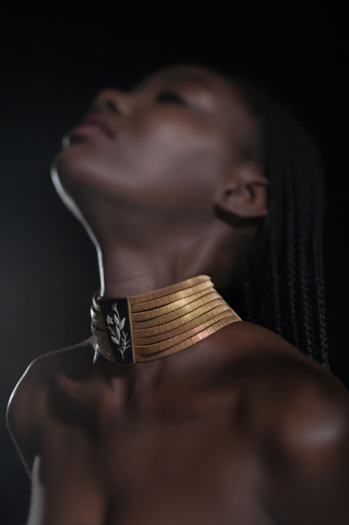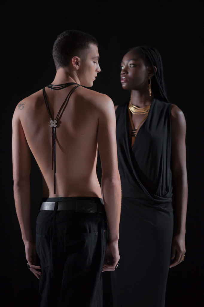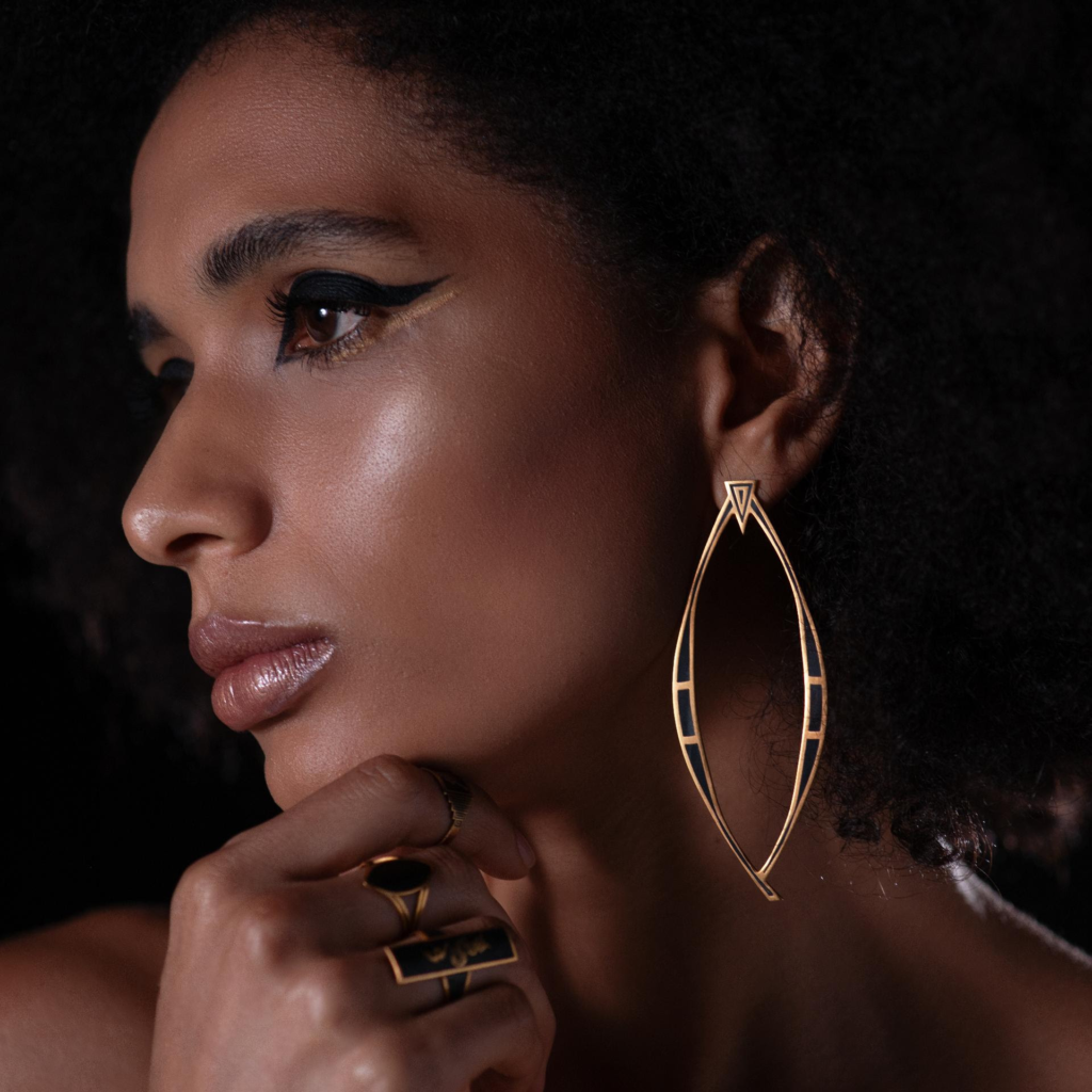 The creations of 12pm come to life through evocative names that summon the divinities of ancient Greek mythology, transporting anyone who wears these jewels into a world of legends and wonders. The “Afrodite” earrings, handcrafted in brass with a gold finish, capture the essence of the goddess of love, illuminated by semi-precious stones that shine like stars in the night sky. The “Athena” multichains necklace envelops the neck in a dance of short and long chains, creating a masterpiece that evokes the wisdom and strength of the goddess of war and wisdom. Details in suede embedded in a cameo resembling armor pay homage to her majesty. The “Calliope” bracelet captures the essence of the muse of epic poetry with hand-embroidered floral details on suede or python, while the “Danae” ring evokes the timeless beauty of the mythological princess with its geometric-shaped cameo. Completing the collection are the “Dioniso” ring, symbolizing the allure of the god of wine, crafted in bronze with a gold finish and embellished with hand-finished black enamel; the soft “Ebe” bracelet in brass bathed in gold and geometric-shaped cameos in colored suede, reflecting the youth and vitality of the goddess of youth; and the “Esra” necklace, which radiates the divine splendor of the goddess, inlaid and crafted in brass with a gold finish and a triangle-shaped cameo with precious stones.