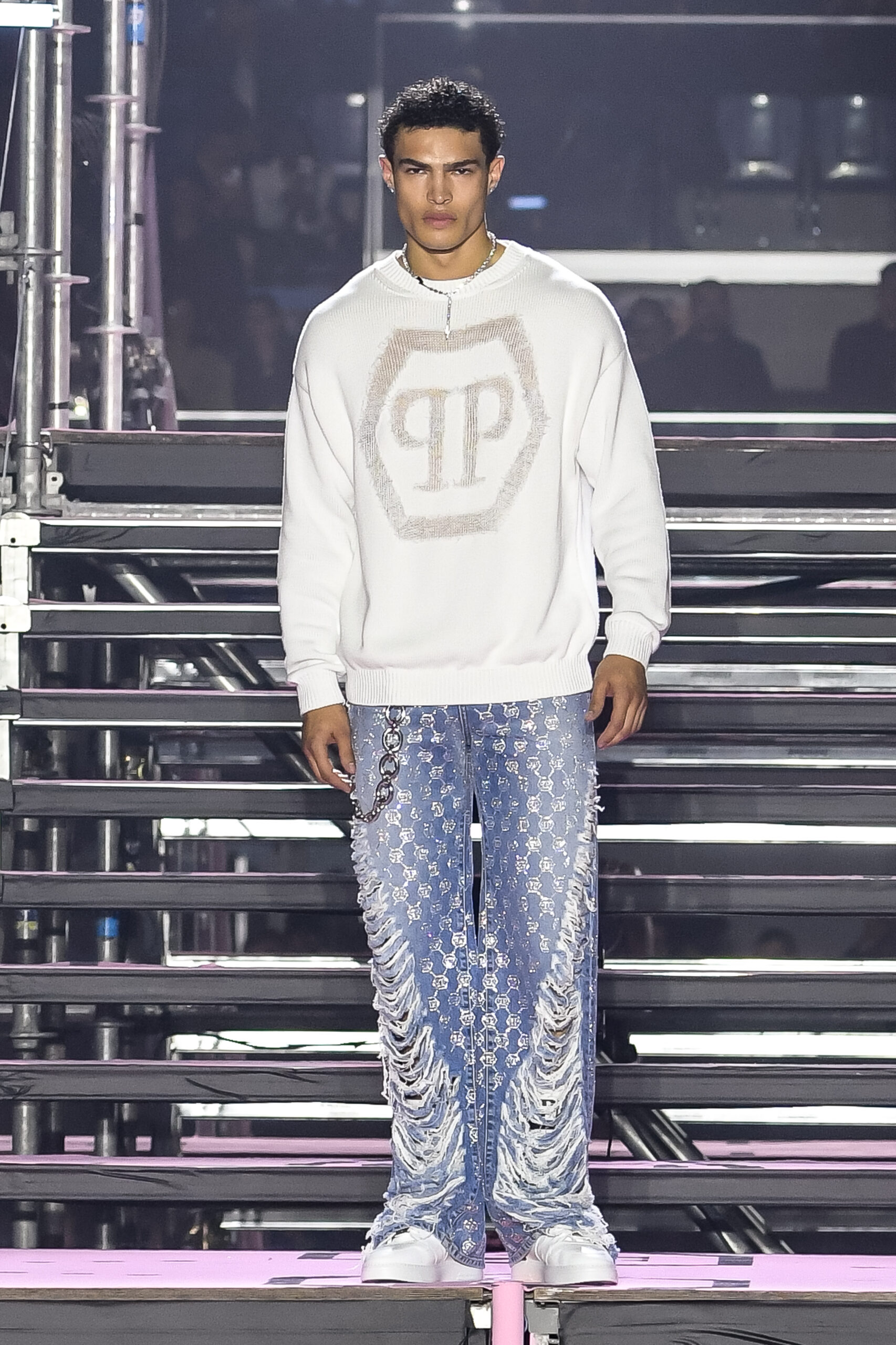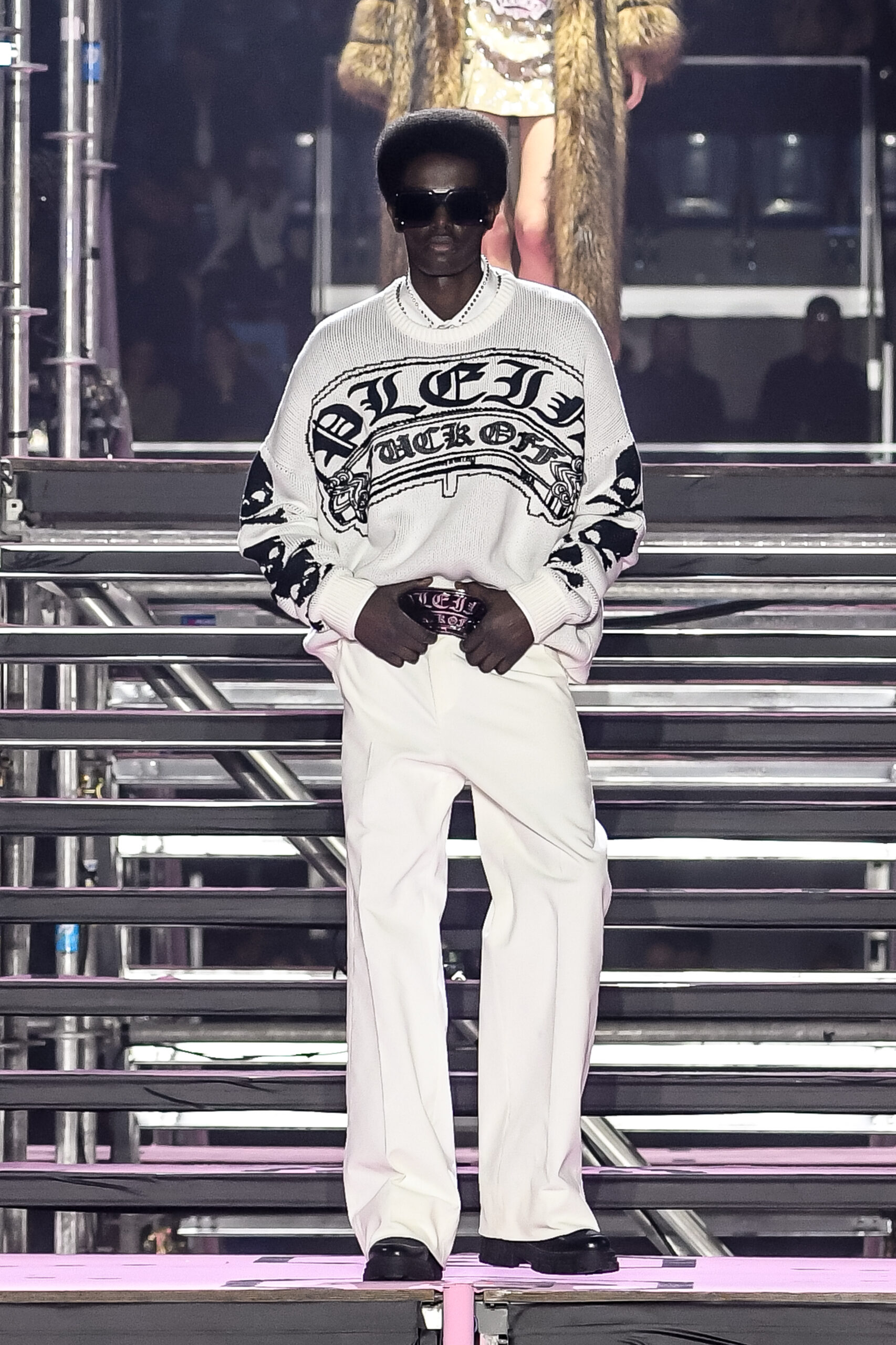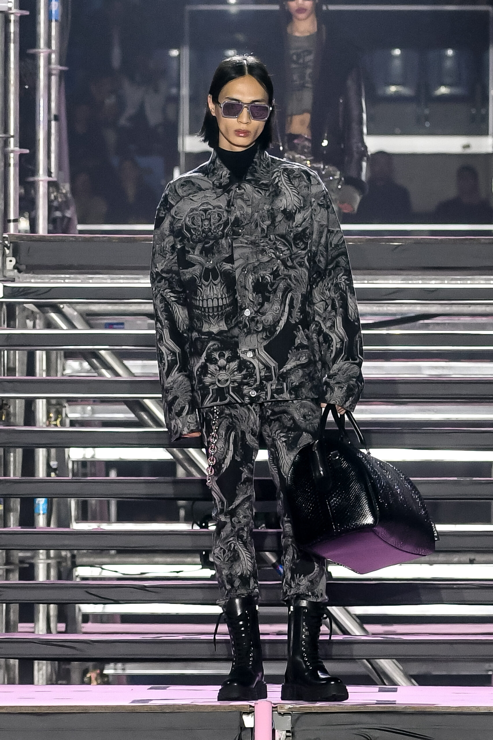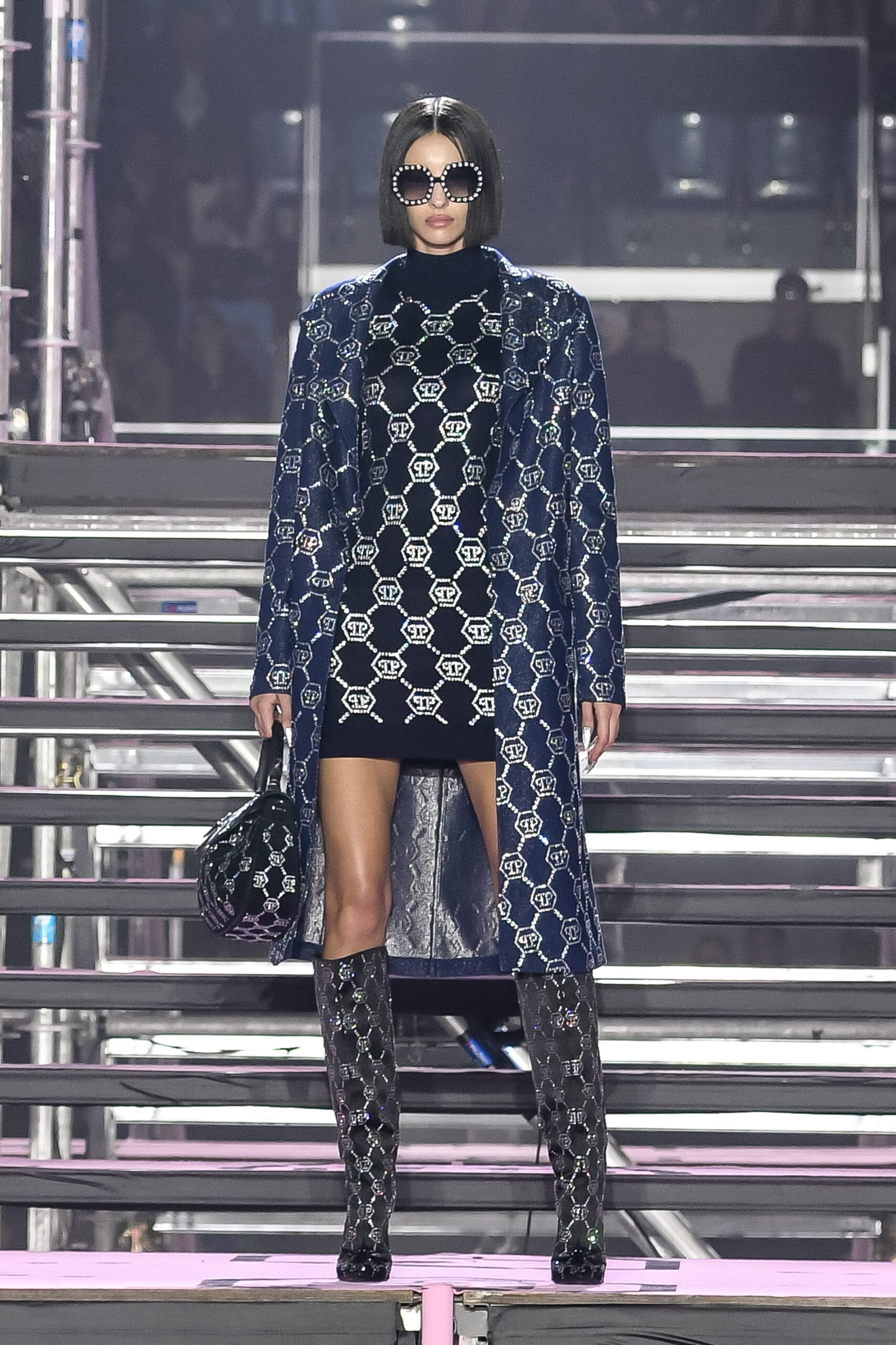 Drawing inspiration from urban landscapes and the modern zeitgeist, the FW24 collection captures the essence of contemporary luxury while embracing the brand’s signature aesthetic. From bold monogram prints to intricate crystal embellishments, each piece exemplifies the craftsmanship and attention to detail synonymous with Philipp Plein.
