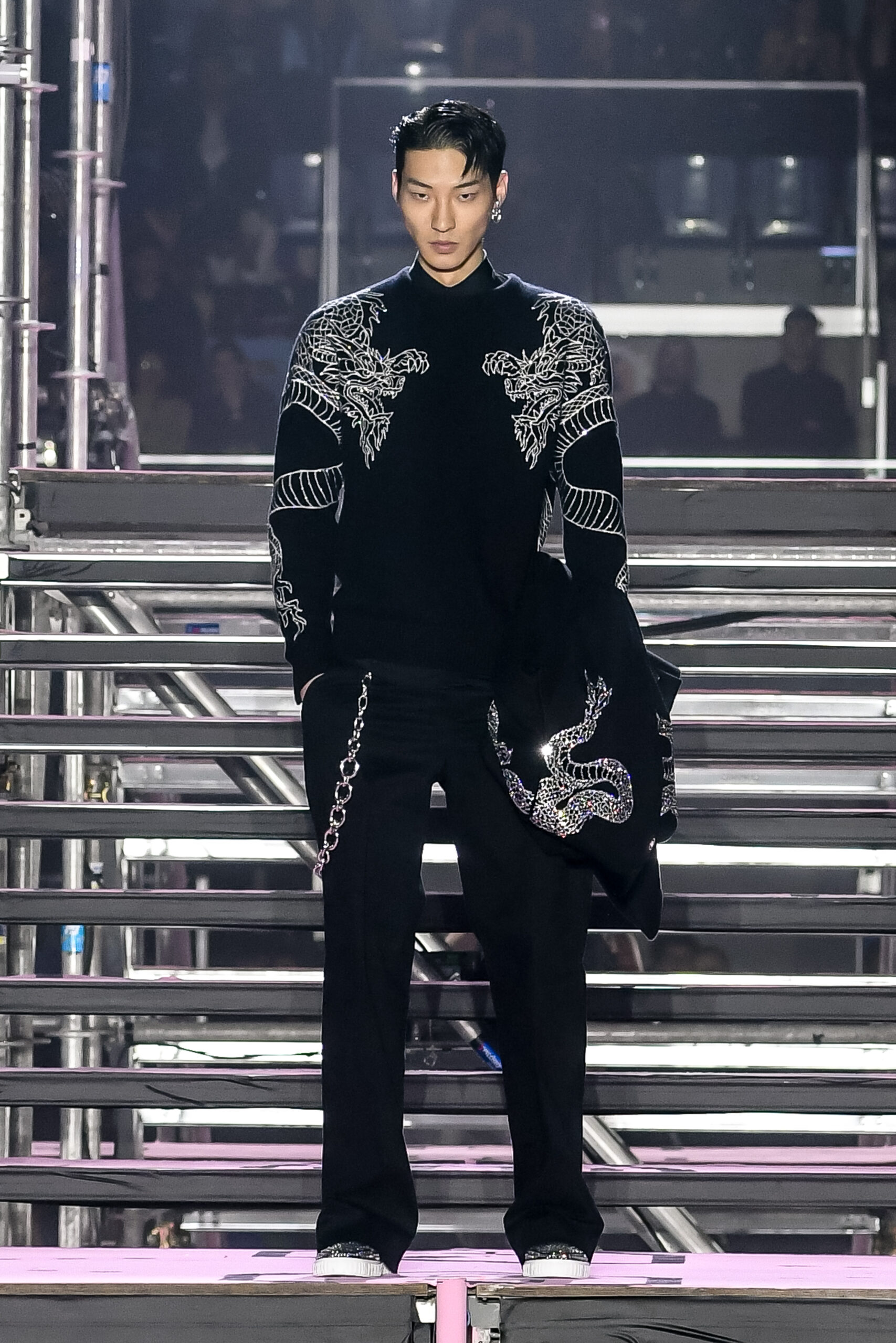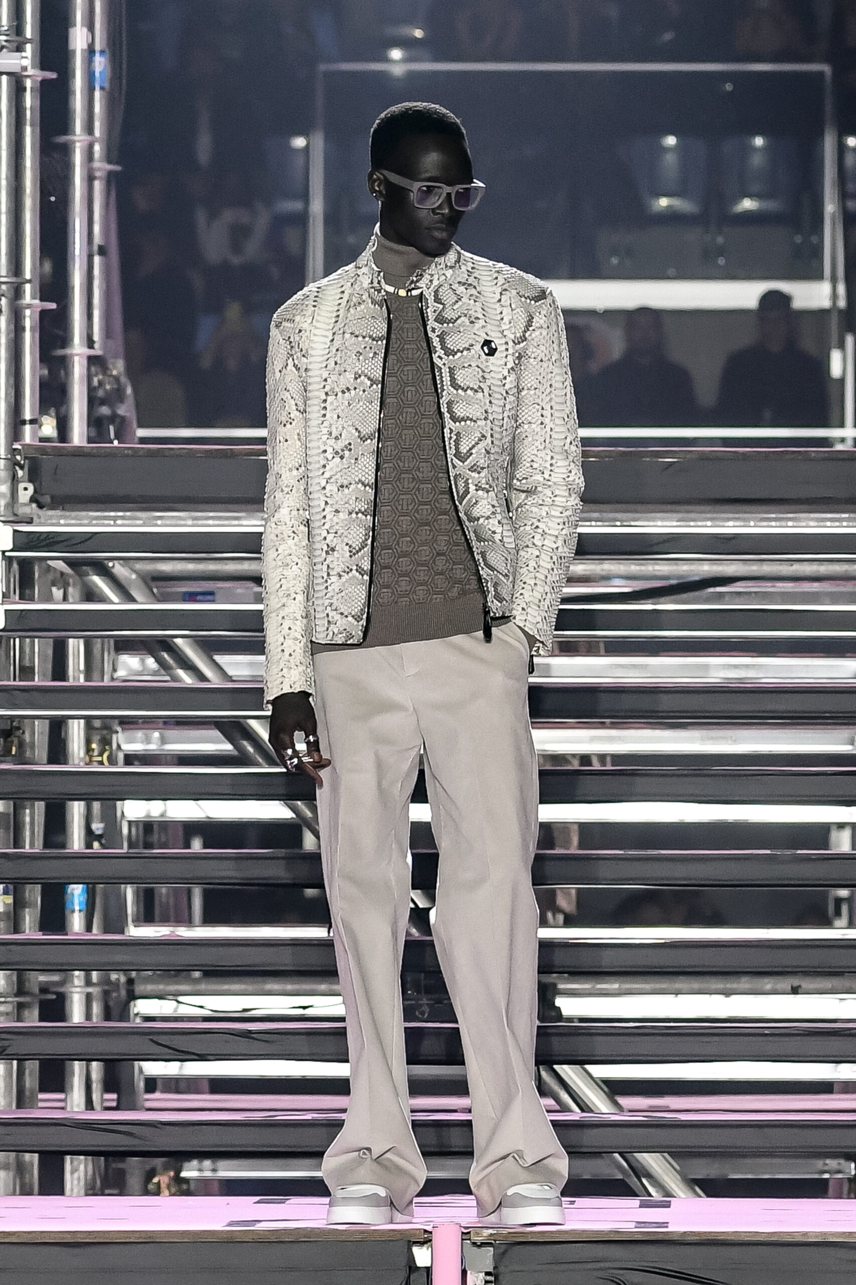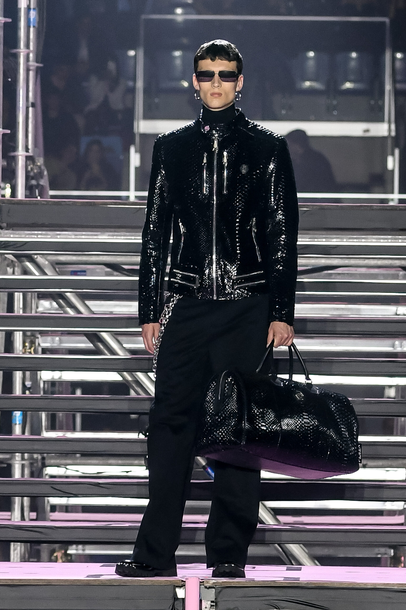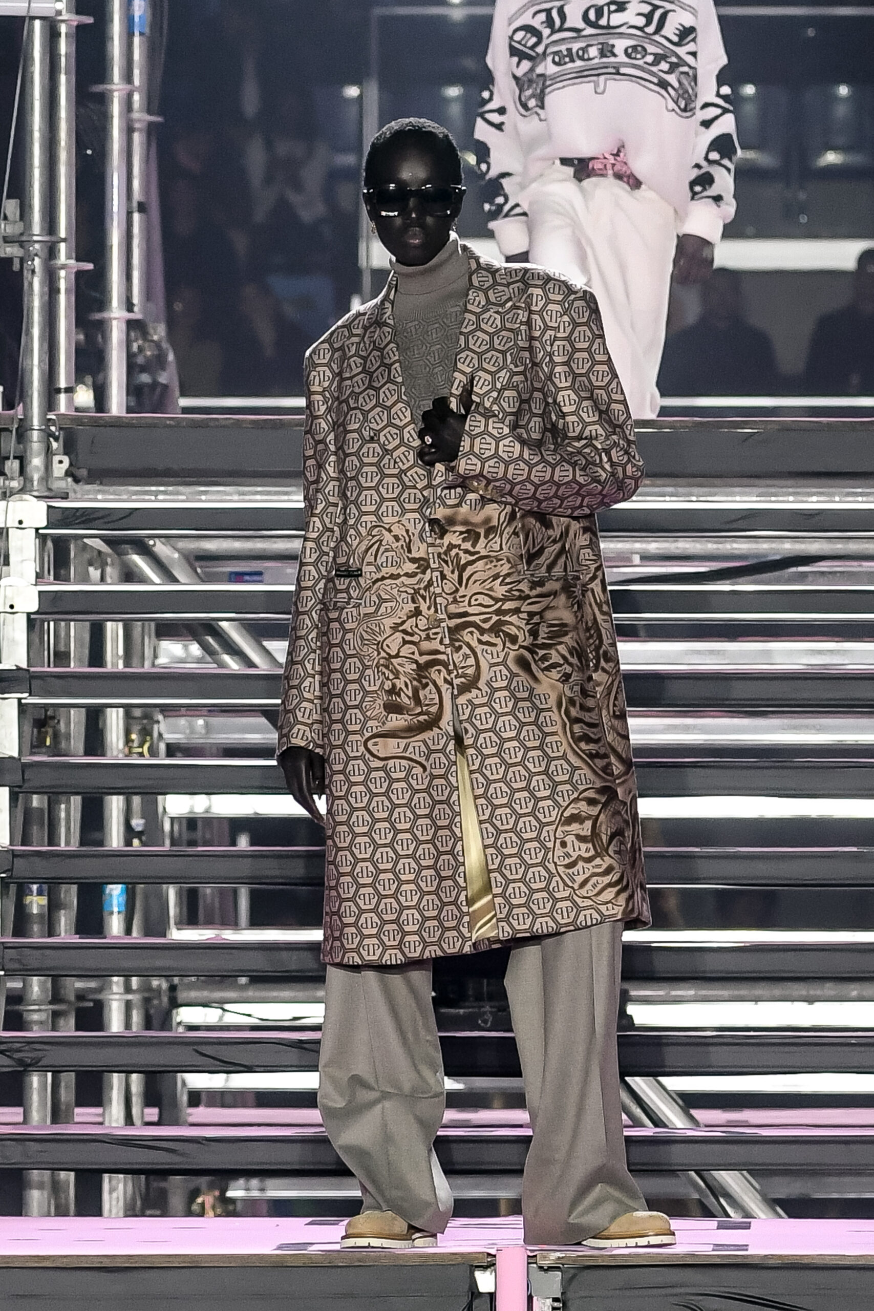 Drawing inspiration from urban landscapes and the modern zeitgeist, the FW24 collection captures the essence of contemporary luxury while embracing the brand’s signature aesthetic. From bold monogram prints to intricate crystal embellishments, each piece exemplifies the craftsmanship and attention to detail synonymous with Philipp Plein.