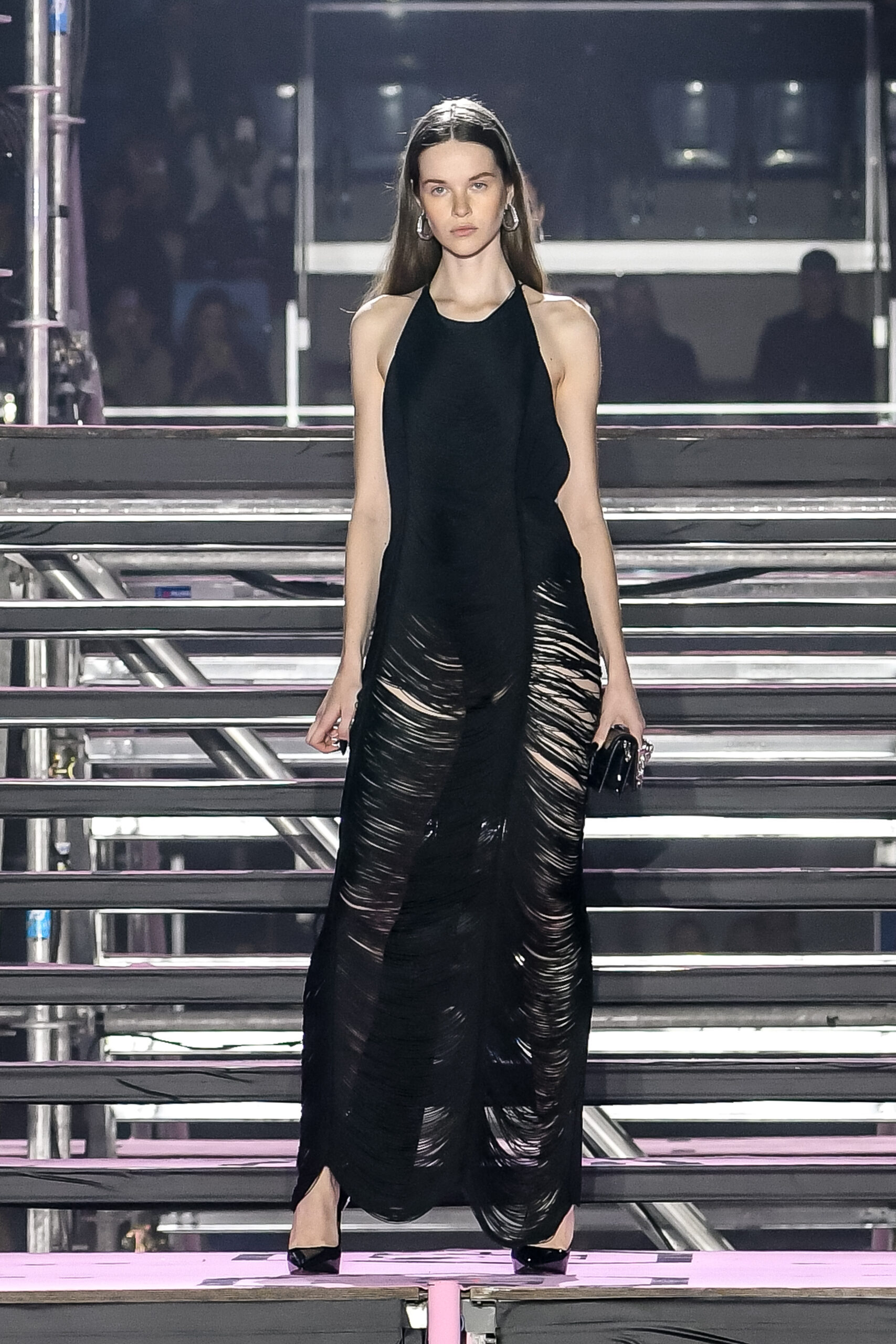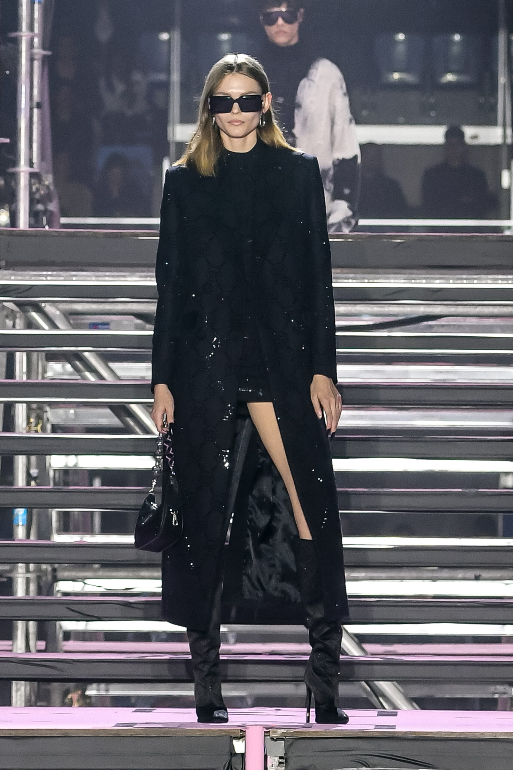In an incredible architectural scenario, the FW24 Show and Collection is a riot of energy, sensuality, and sex appeal. A ziggurat with an interchanging of floors, dynamic planes and a runway spectacle that leads the guests to experience different dimensions and surfaces with an intense sense of glamour.