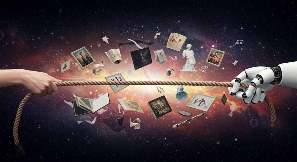 The scoreboard is… tied. AI is leading in speed, accessibility, and pushing boundaries of what’s possible. Humans are leading in storytelling, originality, and emotional depth. The future probably belongs to both.