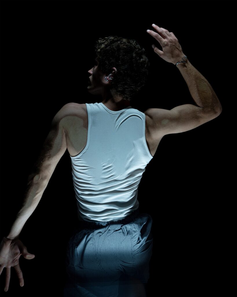 Shot in collaboration with artist Deni Horvatic, the campaign draws on an intimate visual language that dissolves the boundary between subject and viewer. Horvatic’s scan-based portraits are captured from a shared point of view “I see you from exactly where you are” collapsing the usual distance of image-making. The result is a sense of impossible closeness, a near-merging of bodies and gaze, where intimacy feels both charged and unresolved. That tension becomes the emotional core of the campaign.
