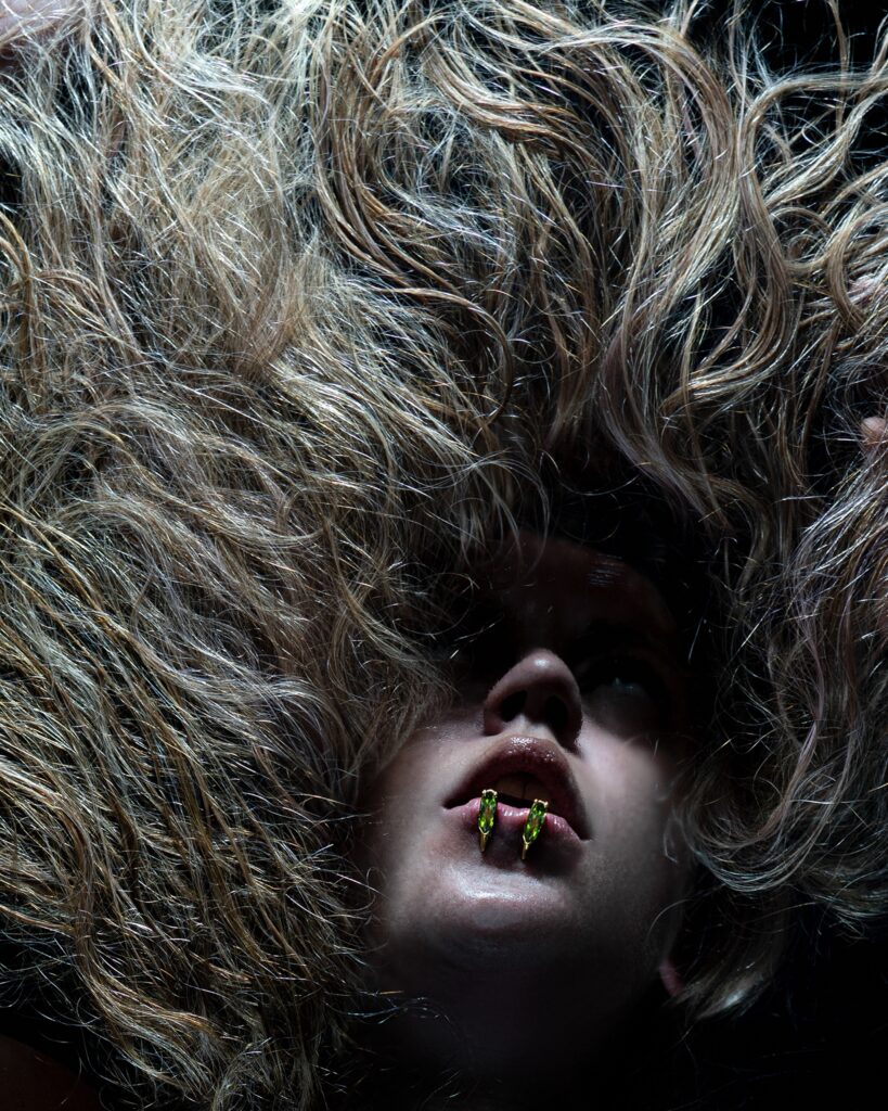 Within this world, jewellery doesn’t sit on the body, it fuses with it. Pieces appear to sink into skin, blurring the line between adornment and anatomy. Closeness, contact, and identity overlap until they are almost indistinguishable, reflecting the way club spaces allow for temporary reinvention and emotional exposure.