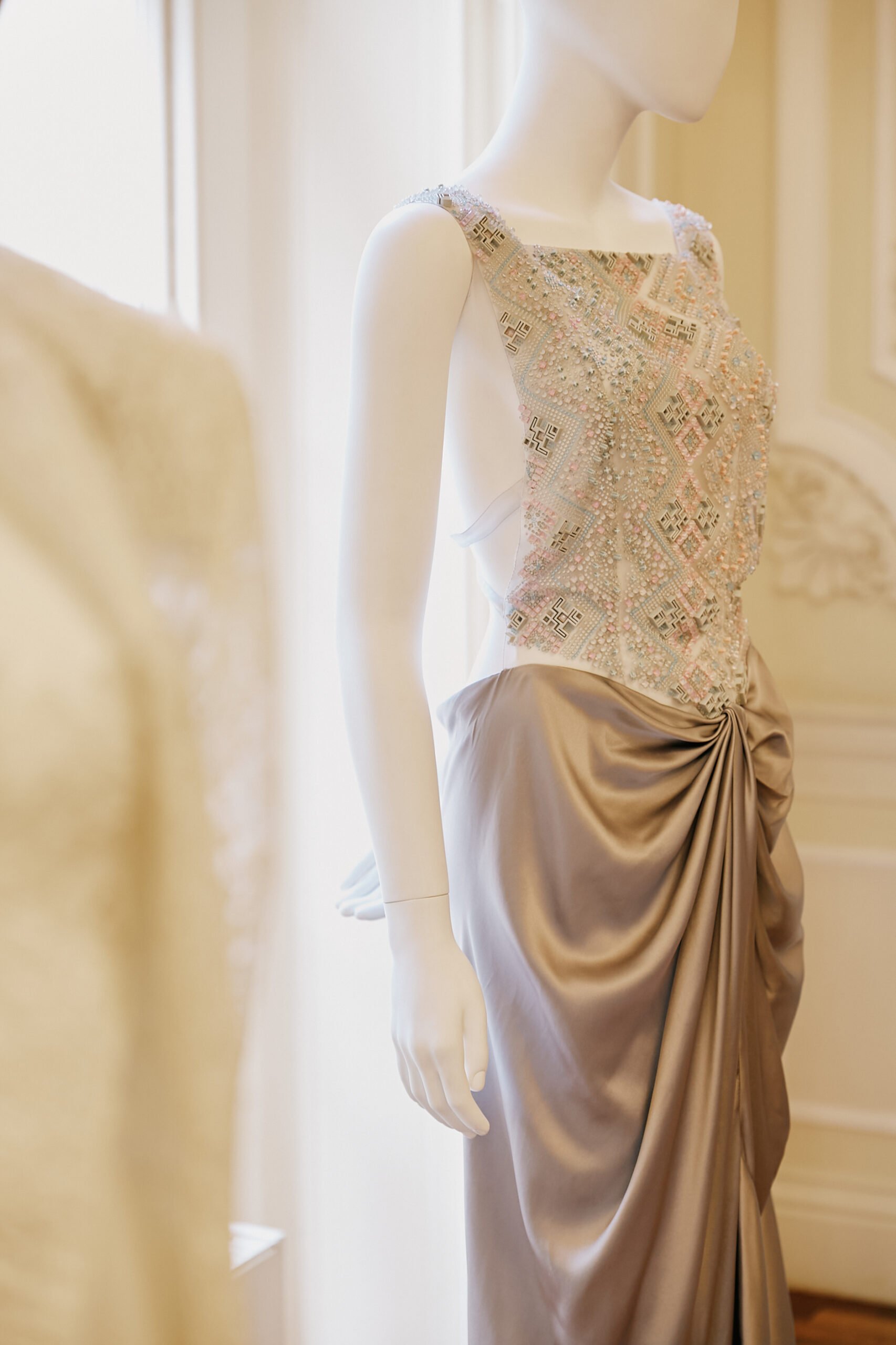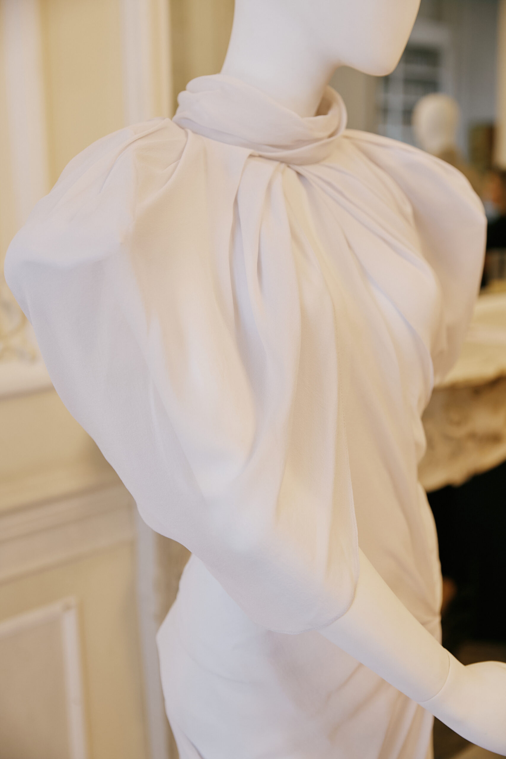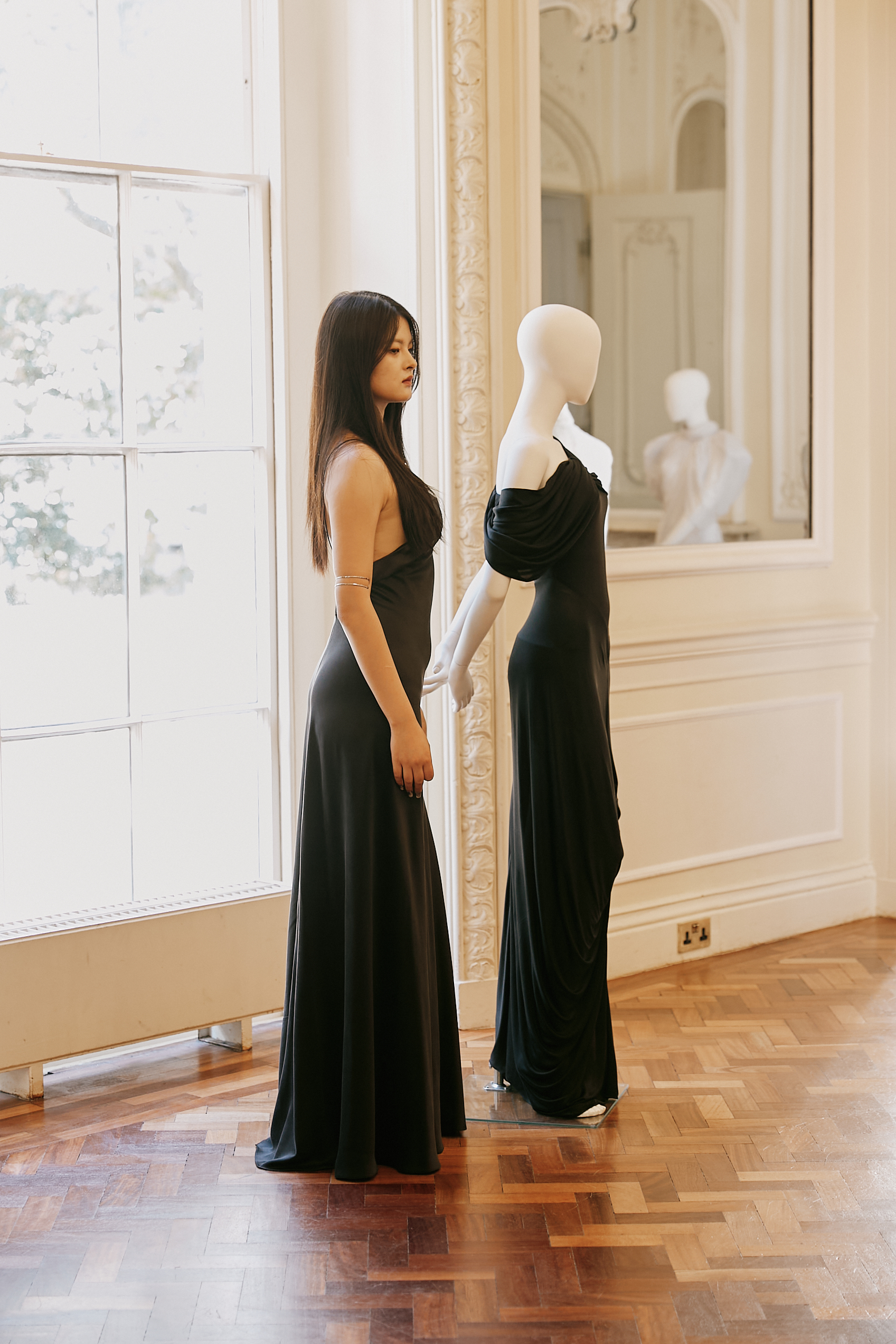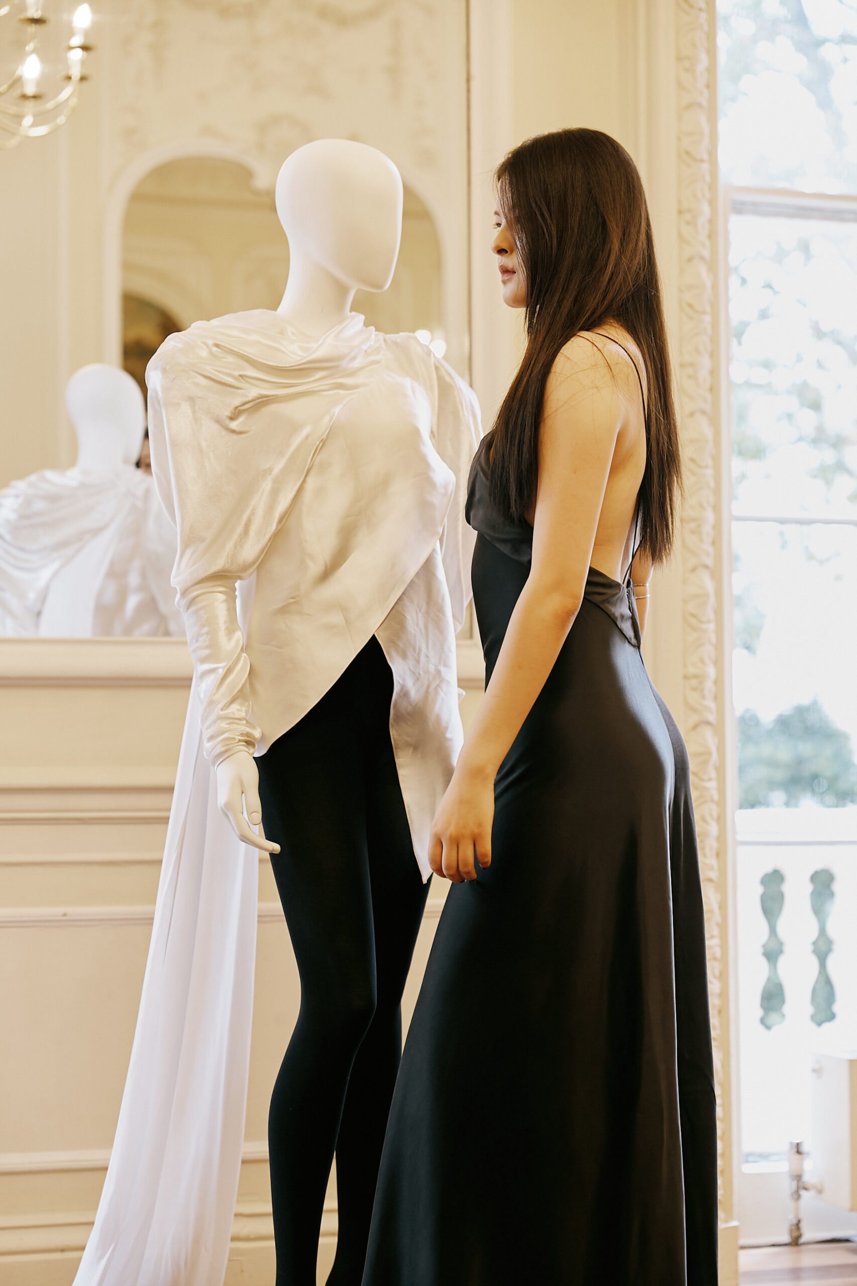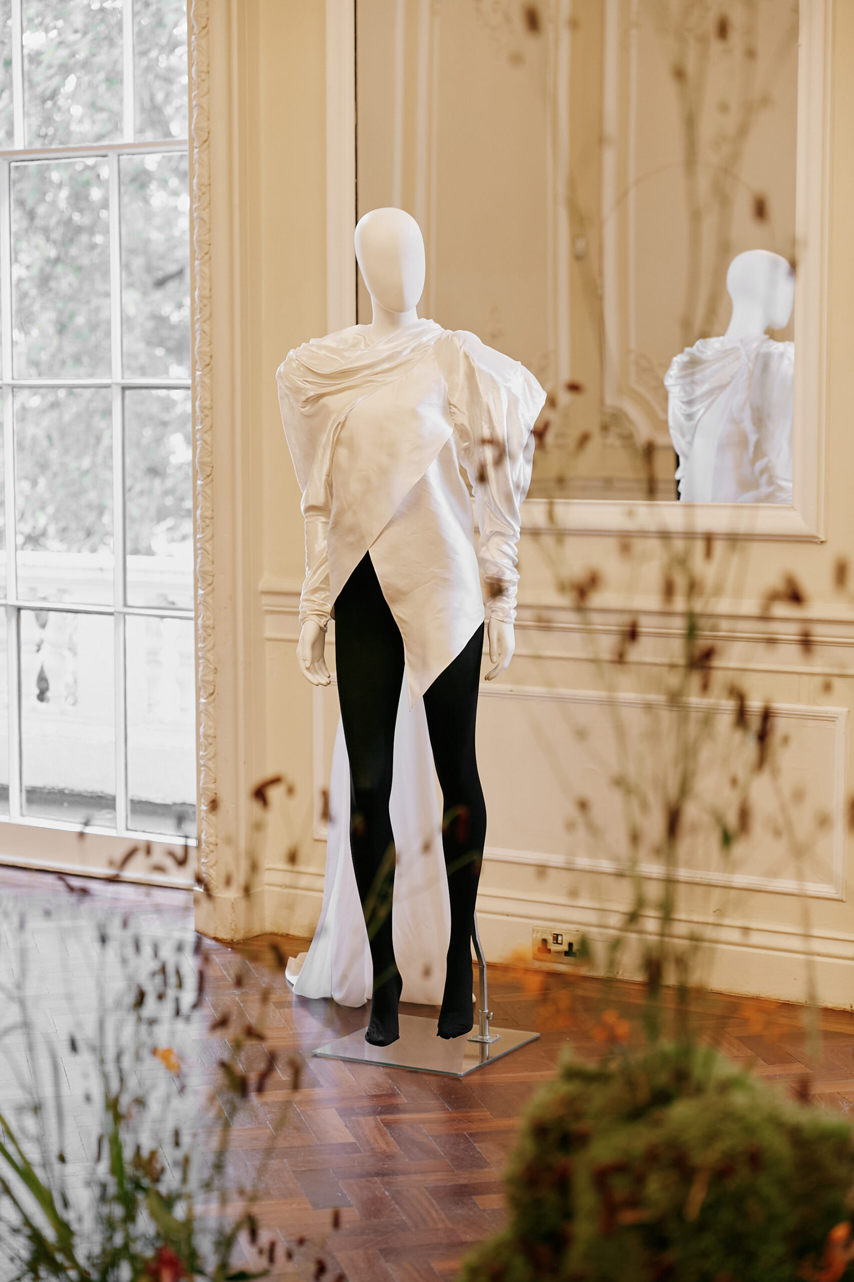 On the one hand, the collection presents De Fichier’s definition and elaboration of the future: a world characterised by uncertainty, ambivalence, and social order, which is depicted from a novel perspective, full of changes in the perception of the future as time proceeds. On the other hand, the collection highlights its difference from the mainstream perception of the future world, which is presented through contrasting elements, such as exaggerated shoulders and draped hemlines.