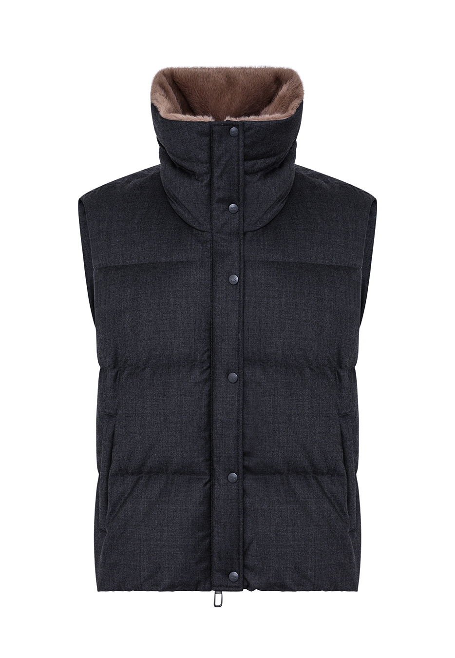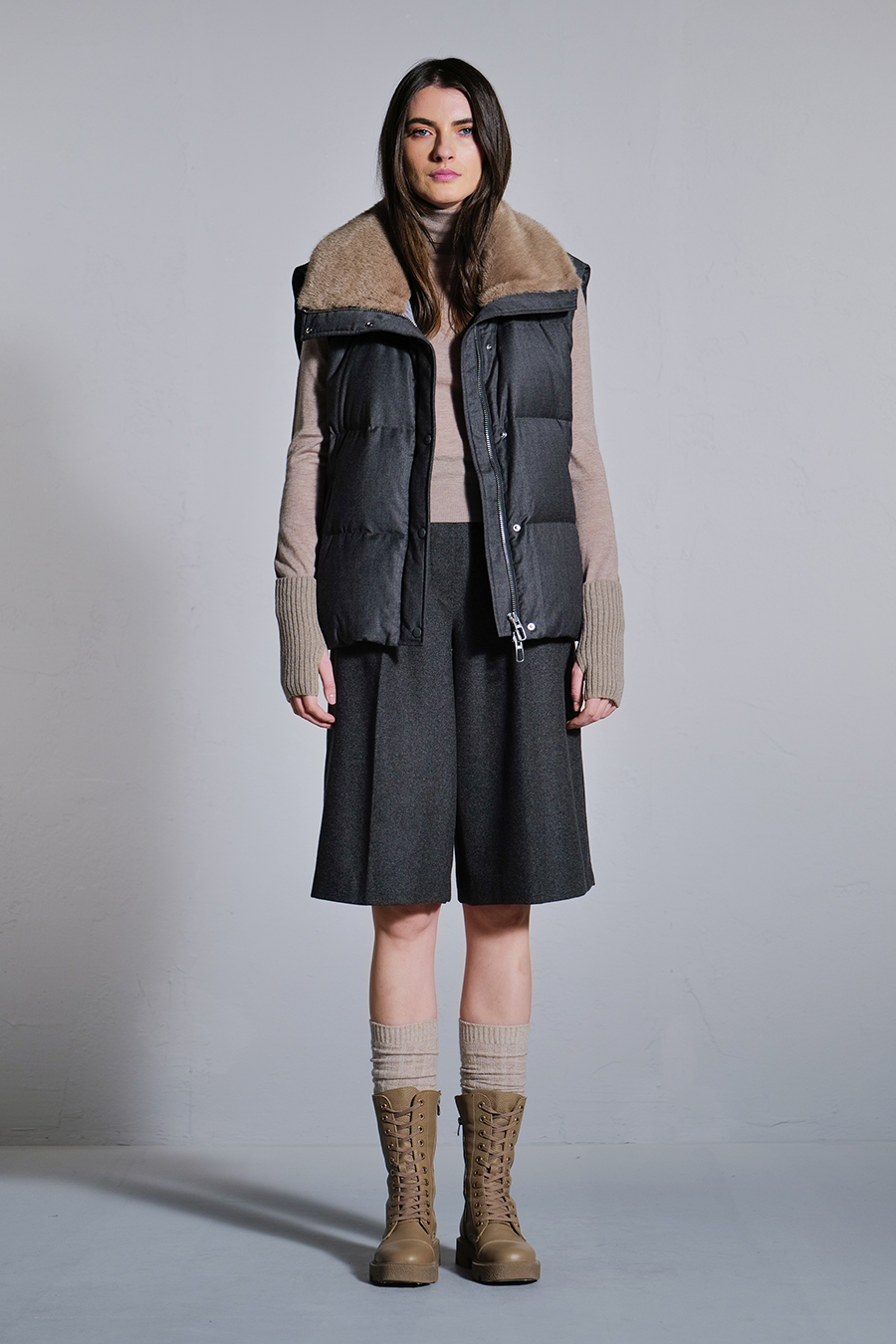 Below & bottom left: The ILANA BOLZANO down vest made of pure wool fabric, which, thanks to its basket-weave structure, keeps you nice and warm.