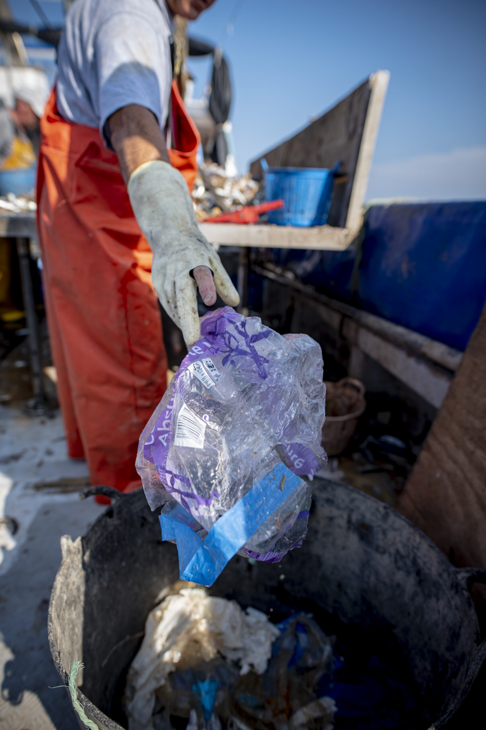 Carolina Blázquez: The most special material we’ve developed is what we call ocean yarn. It’s made from plastic collected from the bottom of the sea through our Ecoalf Foundation. Our mission there is simple but urgent: clean and protect the oceans. We work with fishermen who, alongside their regular catch, haul up marine litter, especially PET plastics like discarded water bottles. That waste is then transformed into polyester yarn. While we don’t collect the plastic ourselves, our fishing partners play a critical role in this effort.