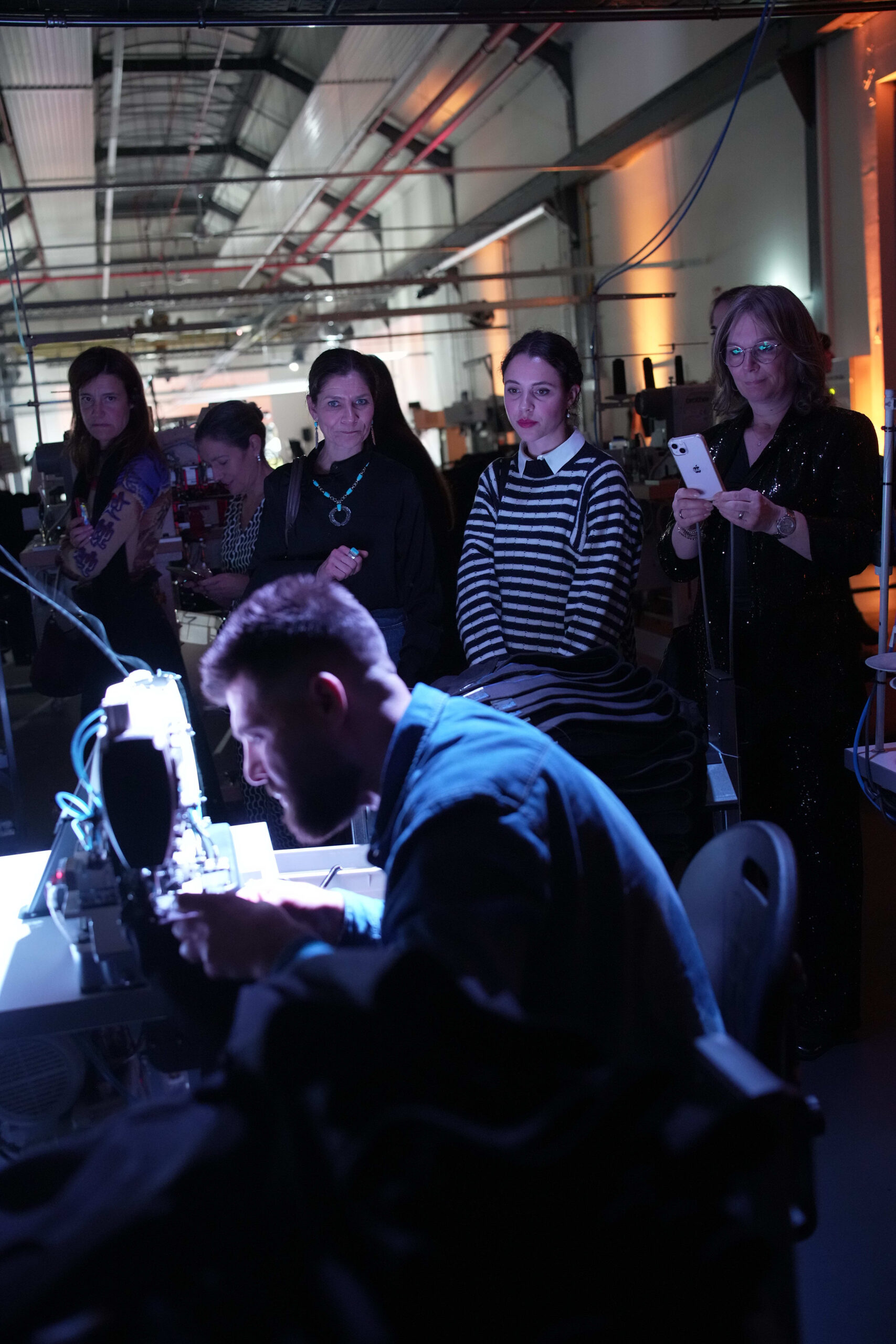 As the name indicates, C&A´s Factory for Innovation in Textiles (FIT) serves as a creative HUB to investigate new and highly efficient production methods. With that, C&A aims to provide jeans for the European market that are made applying new digital technologies, renewable energies and innovative techniques such as laser and nebulization to significantly reduce the water needed for production. The location perfectly combines a rough, authentic industry feeling with the transcending, electric light artworks that was beamed on walls for the Fashion Show. Mickael Karkousse, bandleader of the award-winning Belgian Electro band GOOSE, collaborated with Reinhard Vanbergen, classical musician and composer. Together they created an exclusive soundtrack for C&A’s runway show.