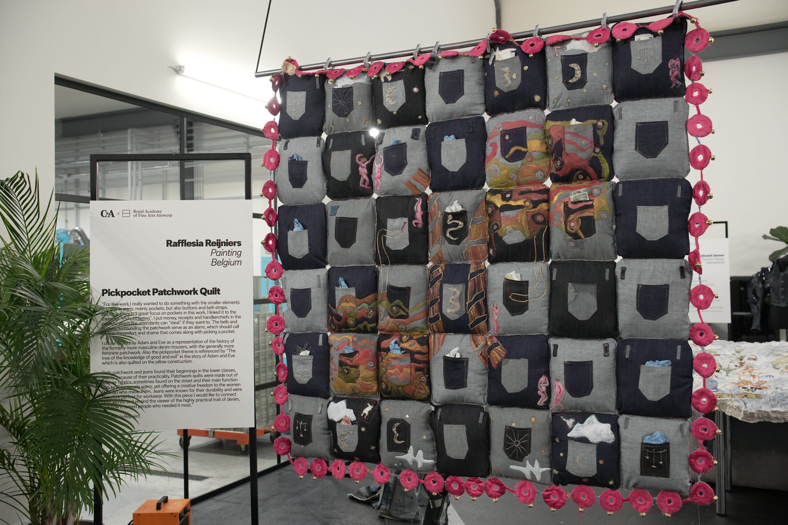 Another highlight at the C&A event was the presentation of a curated art exhibition called “The relevance of denim in history and society – from workwear to the most democratic fashion garment for everybody and all occasions, no matter which shape & size”. This exhibition gave a stage to ten selected students of the Royal Academy of Fine Arts in Antwerp. C&A supported the students with denim fabric pieces, denim trousers and denim accessories provided by FIT. The students showcased their denim creation to an influential and relevant fashion expert community.