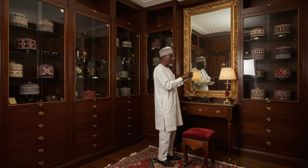 This is not accidental. The cap’s design reflects ancient Islamic and Sahelian influences. Repeating motifs often hint at Arabic calligraphy, ancestral lineage, or clan identity. To the untrained eye, it’s pretty. To the community, it’s a biography.