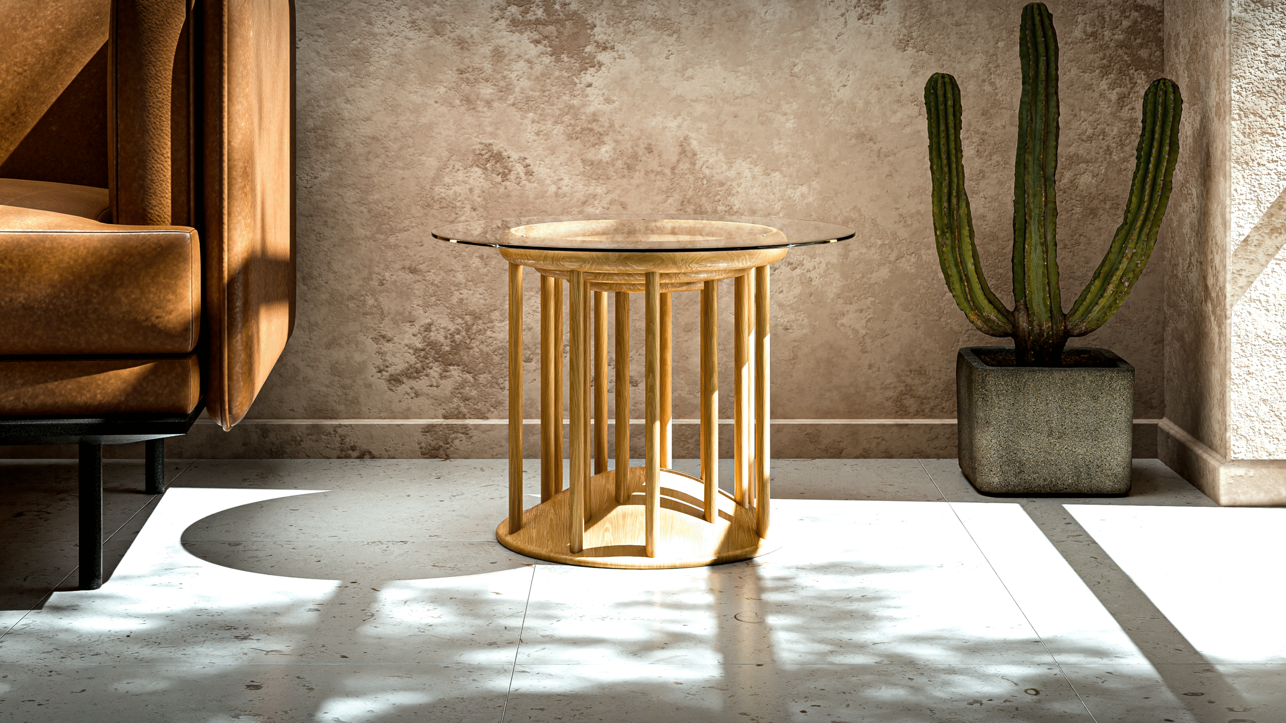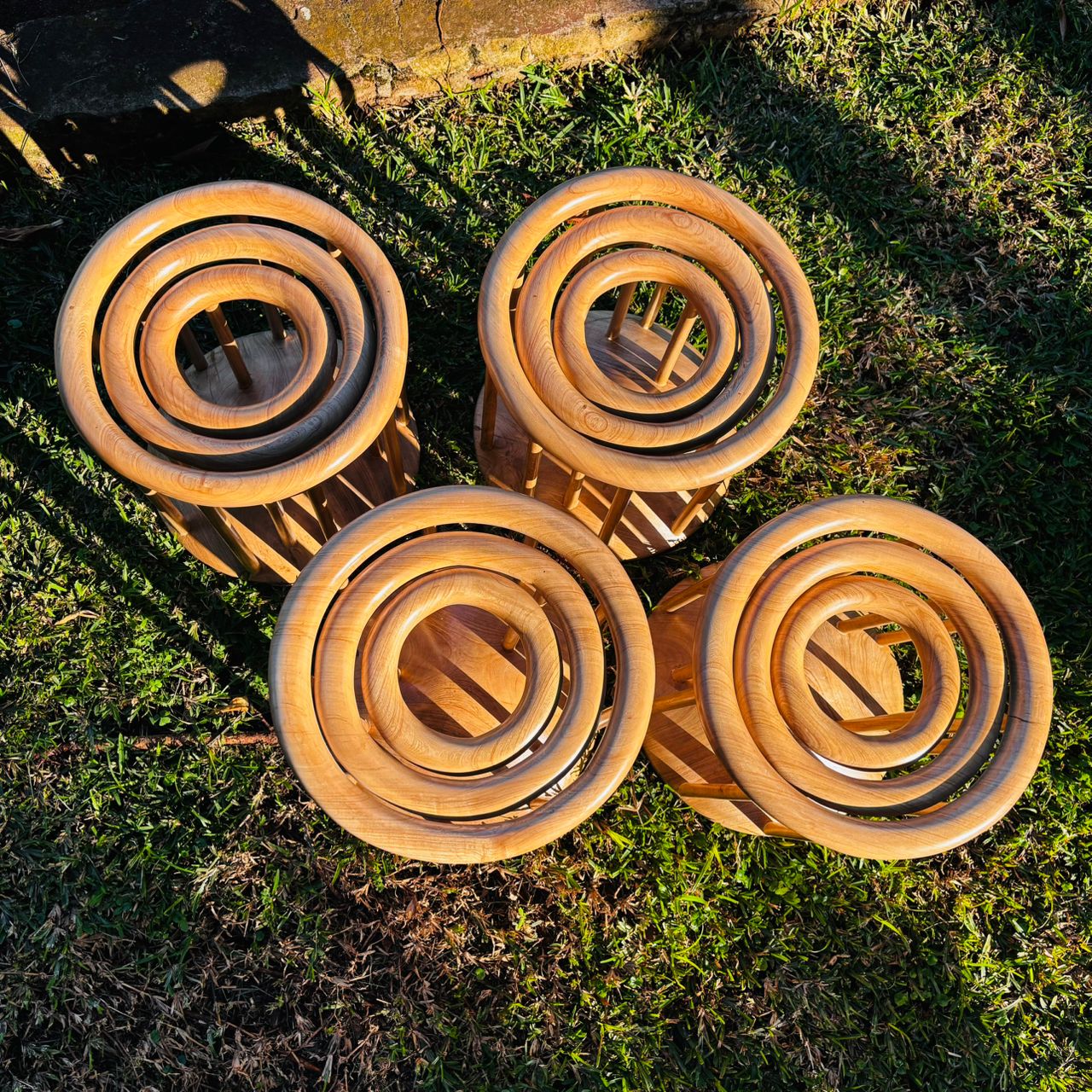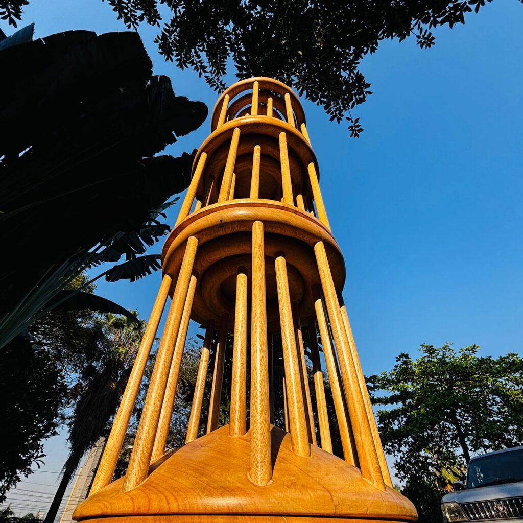 The stool’s seat features three concentric rings, symbolizing the kingdom’s founding clans. Its base reflects the conical shape of the tombs. Supporting spindles hold the rings, creating a structure that’s both stable and sculptural. We used Musambya wood, a local material also used in constructing the tombs, to preserve authenticity. The result is a piece that functions as a stool, a table with a glass top, or a modular unit for various configurations. It’s versatile, elegant, and rich in meaning. We’ve received overwhelmingly positive reactions in Kampala and Nairobi, and it remains one of our most meaningful designs.