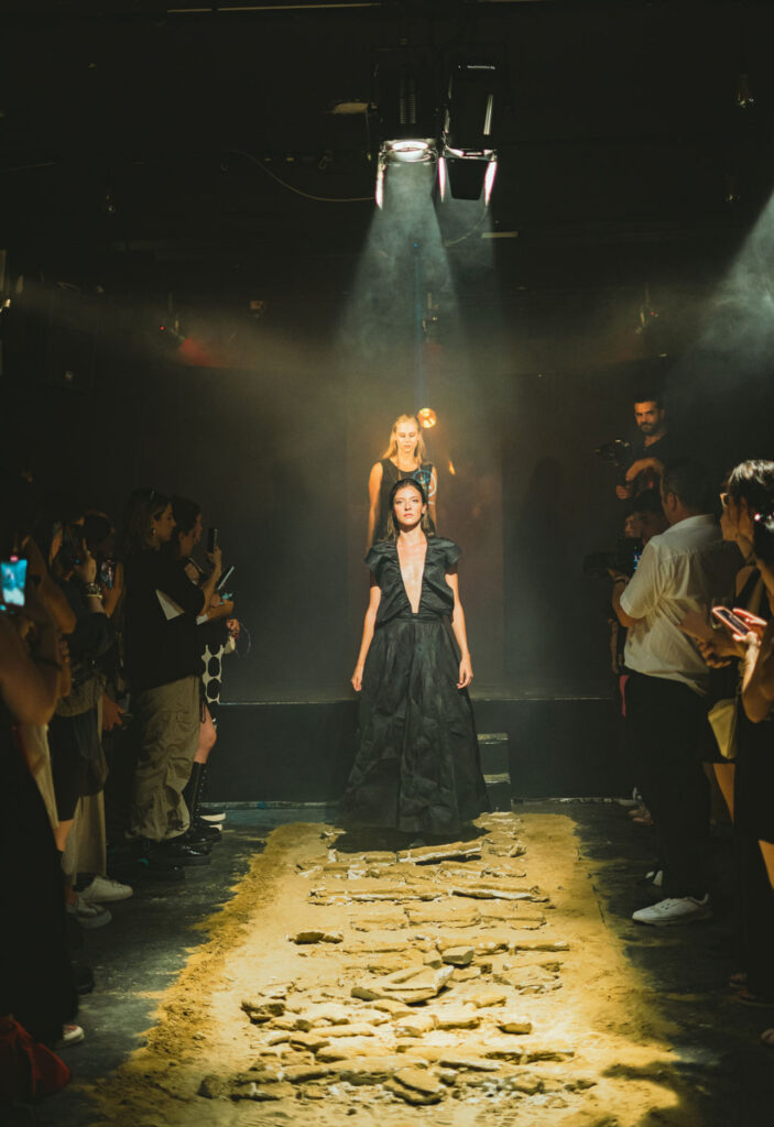 Kareem is meticulously designing the entire FÜNFUNDVIERZIG collection, from concept to execution, with a team of collaborators, including DJ Lynnmaaya and sculptor Hawy Rahman. The pieces will be created using upcycled materials and second-hand fabrics, reinforcing Kareem’s commitment to sustainability and resourcefulness in fashion. A short film documenting the creation of the collection will also accompany the show.