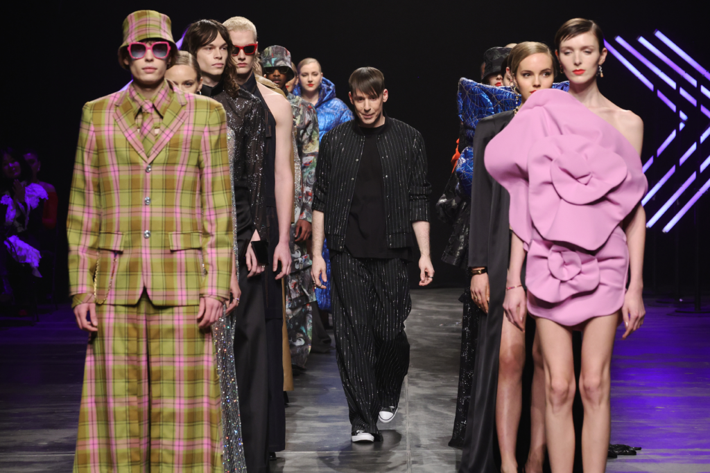The title is an announcement. With the “Get out of my Bed” collection, Kilian Kerner encourages people to break away from the hatred in society and meet each other as people. At the beginning there is the idea of ​​equality for all people . The show began with a mood film in which Kilian drew attention to the current world situation and which was incorporated into a calming glitter animation