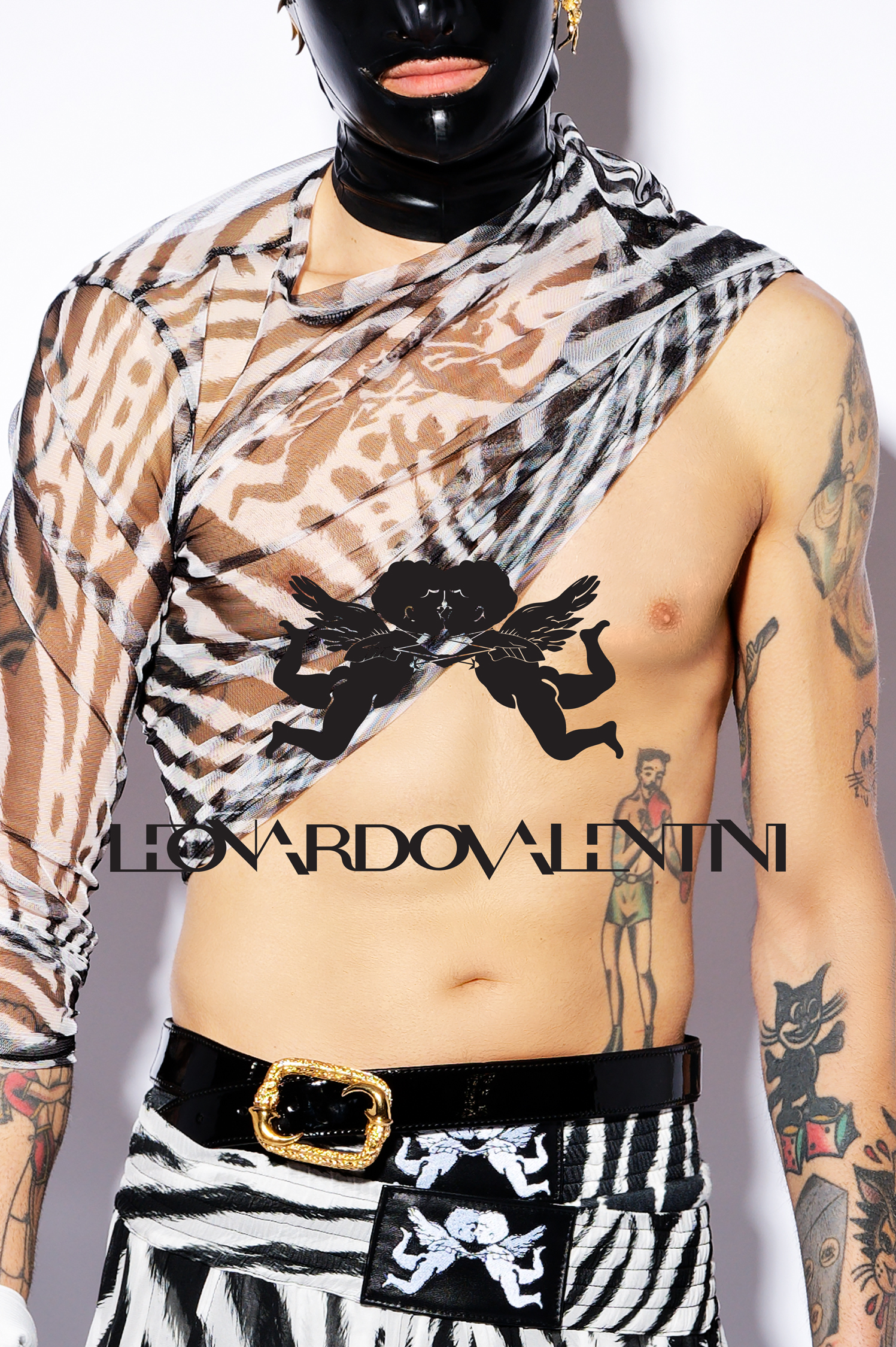 Leonardo Valentini, founder of the eponymous brand LEONARDOVALENTINI, was born in Rome and makes education the pivot of his training. He believes that only in this way there’s the liberty to consciously transgress. With a degree in fashion and a master’s degree from the Polimoda institute in Florence, he launched the brand LEONARDOVALENTINI in 2021 with the “Eroticangelo” collection, an aesthetic and visceral project that inaugurated a passionate path of ever-changing experimentation.