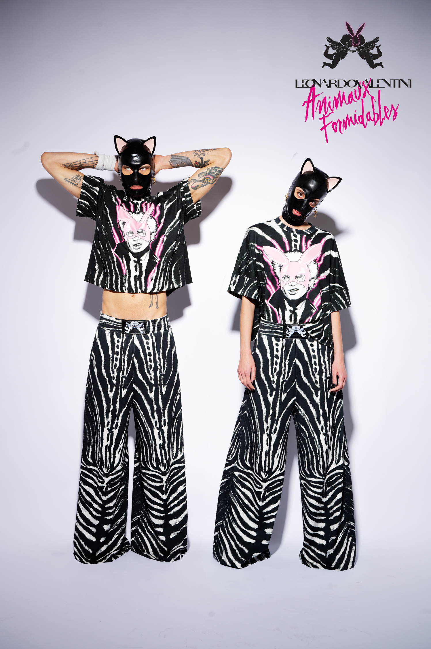 LEONARDOVALENTINI carries on the strong link with the musical world from which he draws inspiration on a daily basis: from the very name of the collection, and after dressing internationally renowned artists from Maneskin to Irama, from Ghali to Rose Villain, the shots of the campaign feature the ANIMAUX FORMIDABLES.