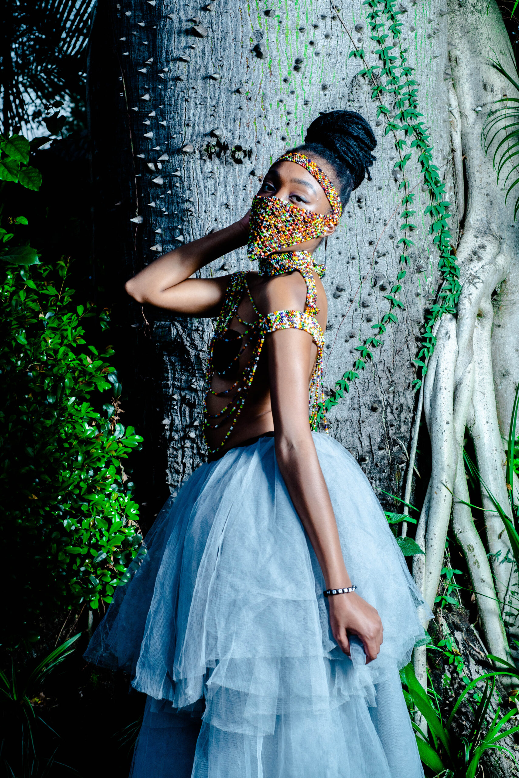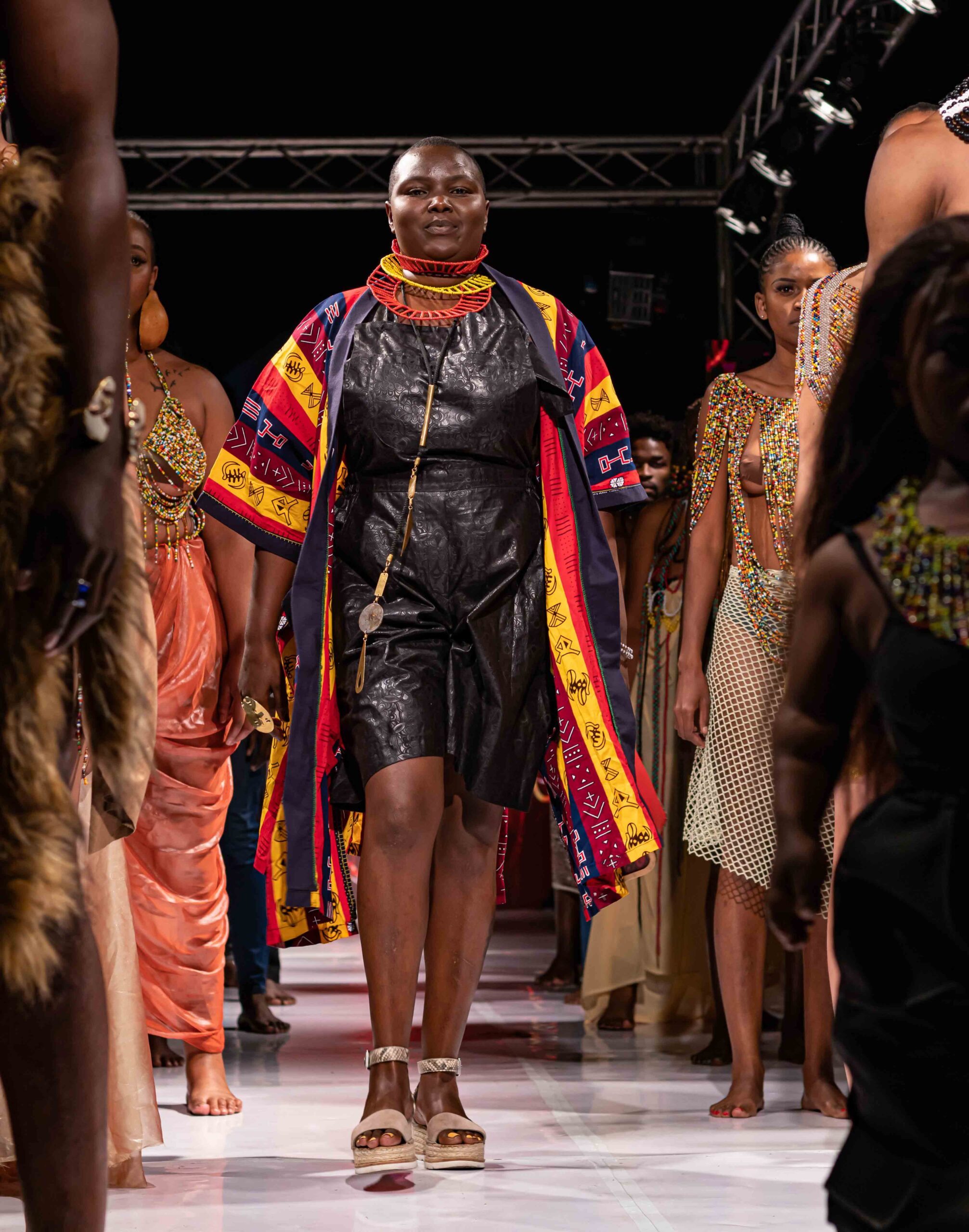 Shiko Onyango: I look at the future, and the question I ask is: how are we going to keep our cultures preserved ten years from now? How will the forty-two tribes of Kenya be presented? There’s a way fashion has been cocooned in a box to limit what fashion is to us so that when it comes to African culture, we don’t look at it like it’s fashion. We see them as souvenirs and museum objects. But in ten years, I want to see how a Maasai woman would look in this modern world because modernization is going to take over and we need to put our culture there. If it is through fashion, then how do we represent all the tribes and Africa in general? How do we present our jewellery, wearable arts, masks, big earrings, tattoos, and face marks? We need to tell people that this is acceptable and not taboo. It is a way of life, and whatever was brought after is new to us.