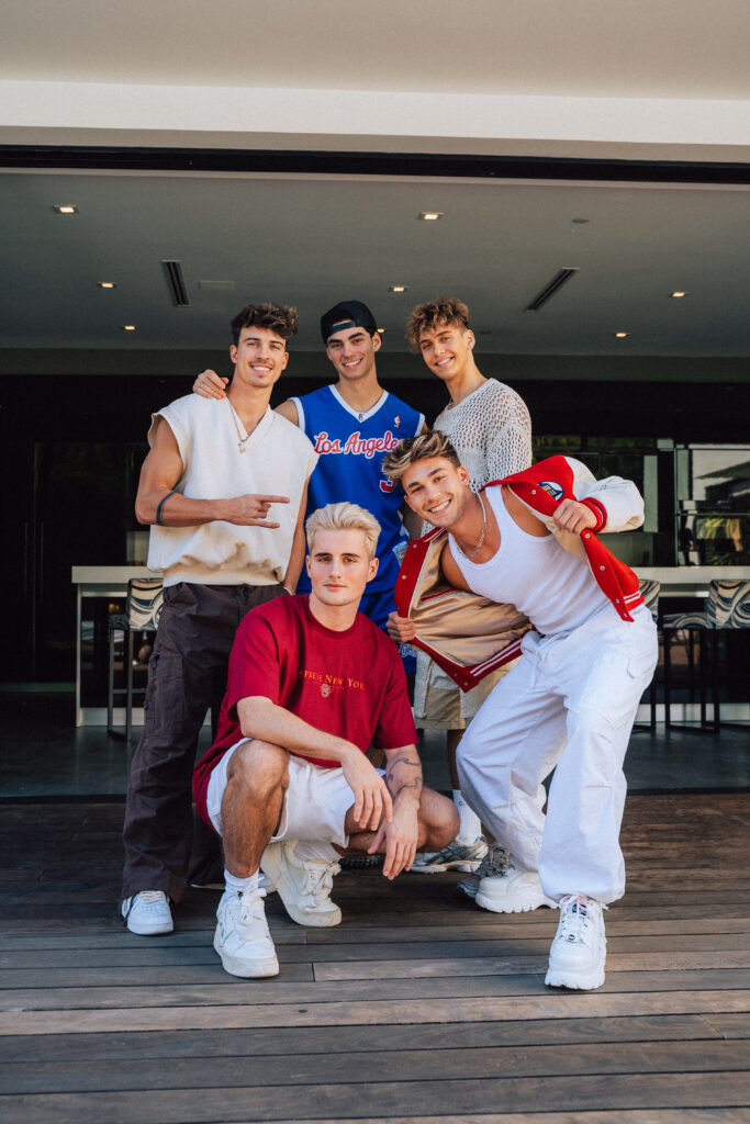 Since their social media debut as a collective in August 2021, the five friends Bene Schulz (22), Jacob Rott (23), Julien Brown (23), Luis Freitag (24) and Tim Schaecker (24) have amassed a large social media following through high-quality content creation and their frequent use of social media, which honed their creativity and wit, and have gained international fame with their entertaining videos, including collaborations with Heidi Klum, Brad Pitt, Jason Derulo, Chris Pine, etc. Being in front of the camera and engaging with their loyal and dedicated community of over 40 million followers is part of their daily lives. They have already made a name for themselves in the entertainment as well as the fashion industries and are now hyped to delve into the music industry.