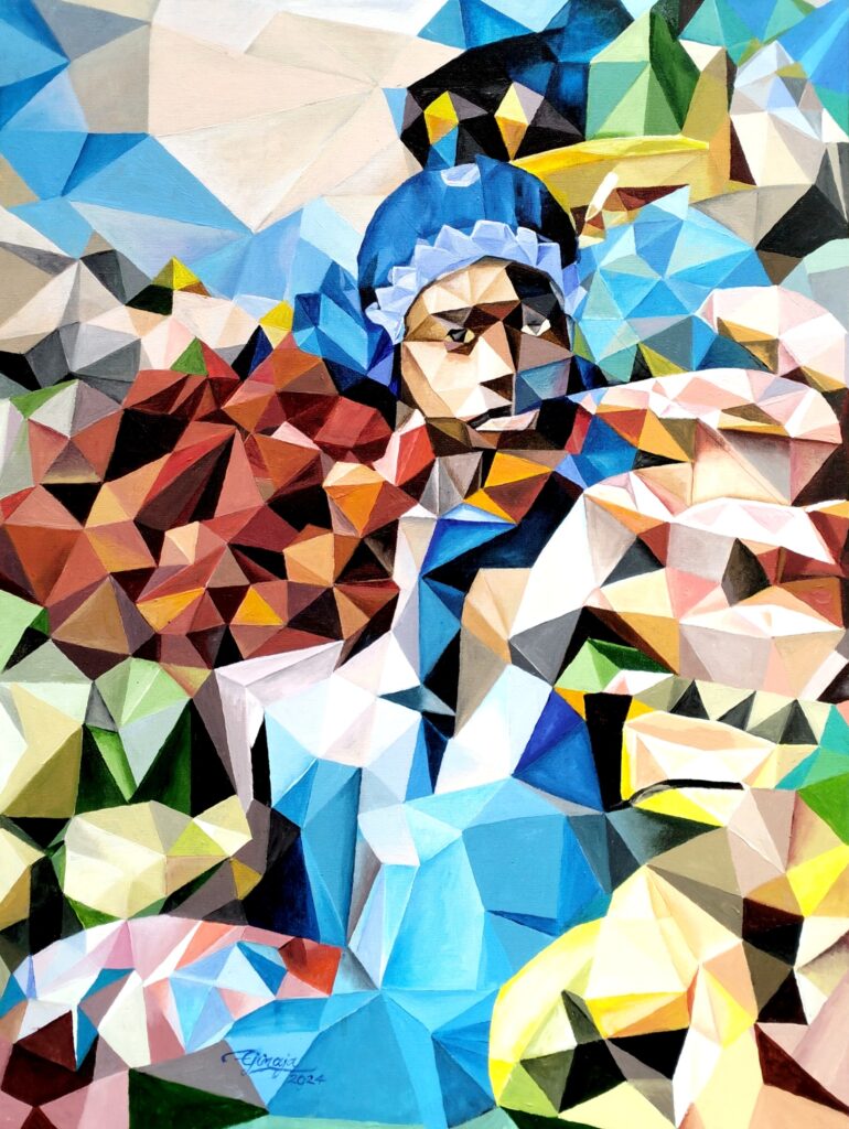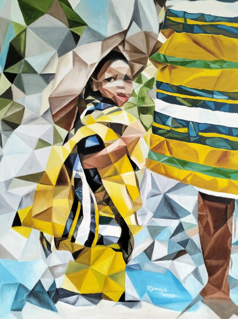 Ejimaja Vivian: Coming from a background in architecture, my works are usually resplendent with lines, shapes, and geometry, so I would describe my work to reflect the cubist style. I also work with bright colours, which are most associated with African beauty and culture. These features make my work unique. Never miss a beat in fashion, arts, beauty, and lifestyle, follow FAB L’Style Magazine.