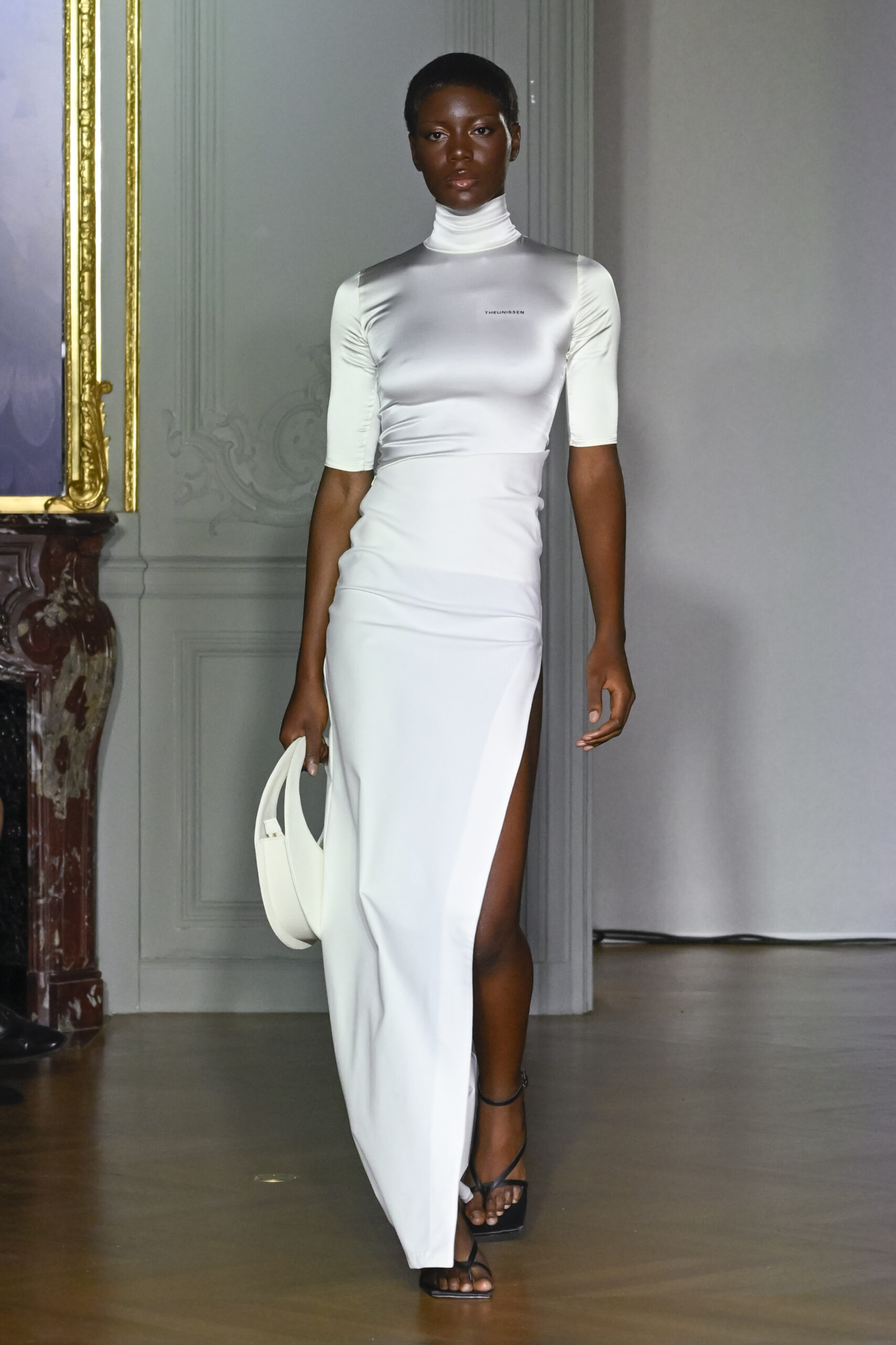 Indeed, the second skin is the driving line of this collection while maintaining her artistic direction inspired by the 80s, giving birth to hourglass silhouettes, XXL shoulders and mini waists.