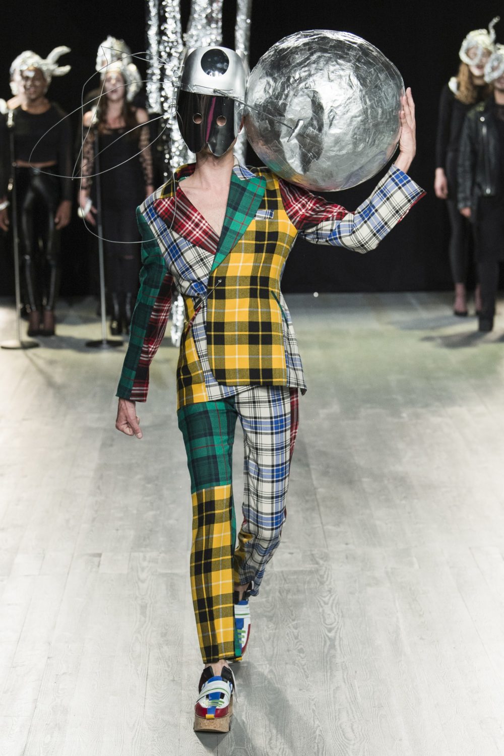 The themes in LGBTQ+ in Charles Jeffrey Loverboy’s collection are pain and protest. Fantasies about the creative and scientific possibilities of body-modification are rife in fashion. Some of Jeffrey’s models had facial prosthetics, others had a bundle of socks bursting out from under their coats.