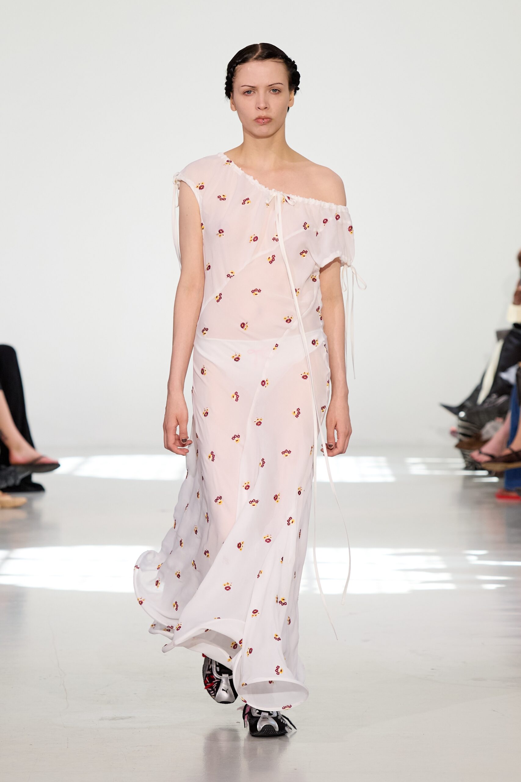 There’s a tenderness at the heart of Rave Rvw’s Spring/Summer 2026 collection — but don’t mistake it for fragility. Blommornas Makt (Power of Flowers), unveiled at Copenhagen Fashion Week in the hallowed halls of the former church Nikolaj Kunsthal, channels a quiet kind of resistance: nostalgic, feminine, radical. It’s a floral uprising dressed in sculptural suiting, heat-pressed linens, and unapologetic softness.