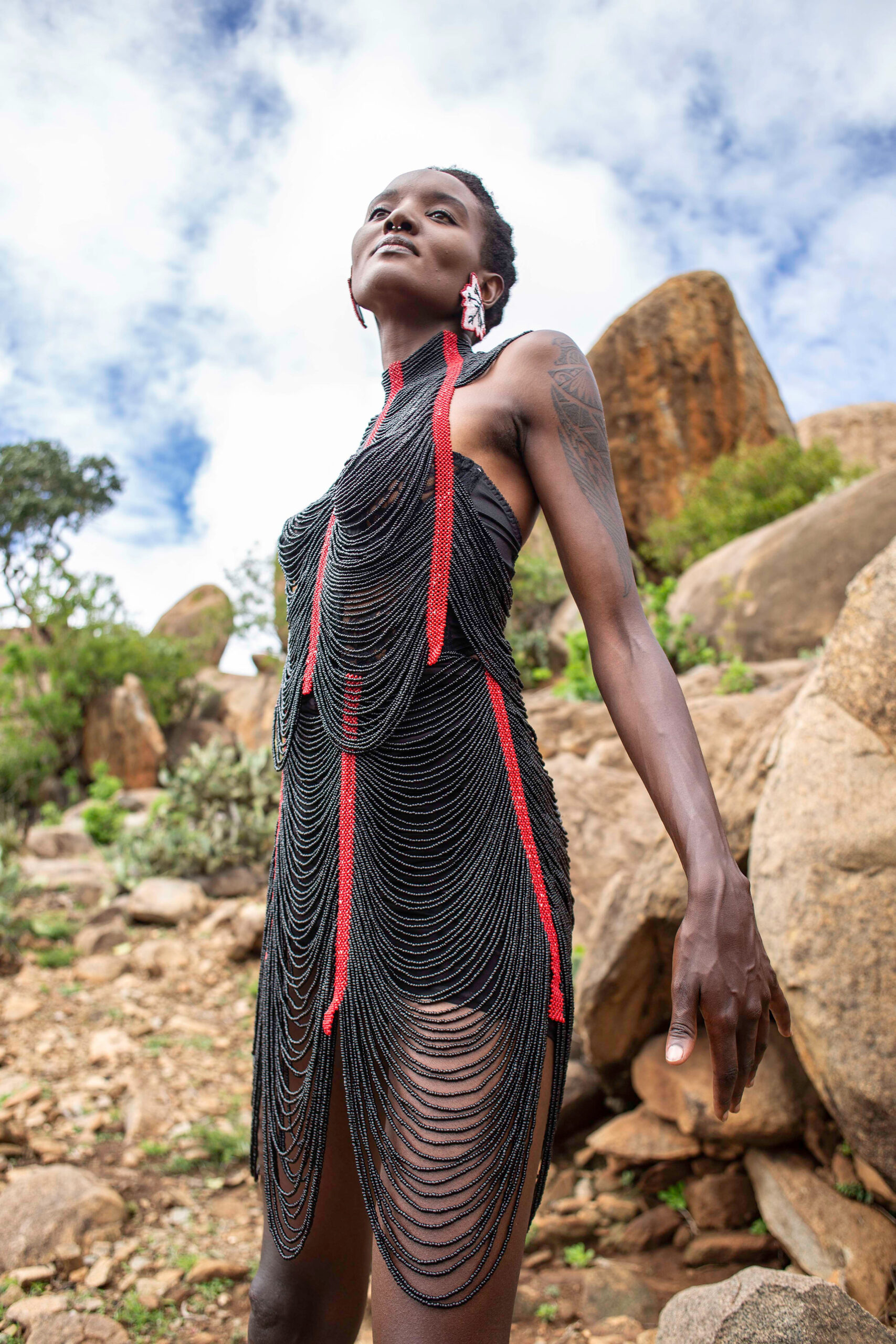 Sharon: When you delve into Kenyan history, especially in terms of fashion and garments, you’ll see that Kenya is not traditionally a textile country. Our history is rich with ornamental accessories and jewelry. Initially, we used seeds and shells to make these accessories. It was only after the arrival of the Indians that we started using glass beads. Before that, seeds were our beads, and they were all about adornment. This adornment holds significant cultural importance.