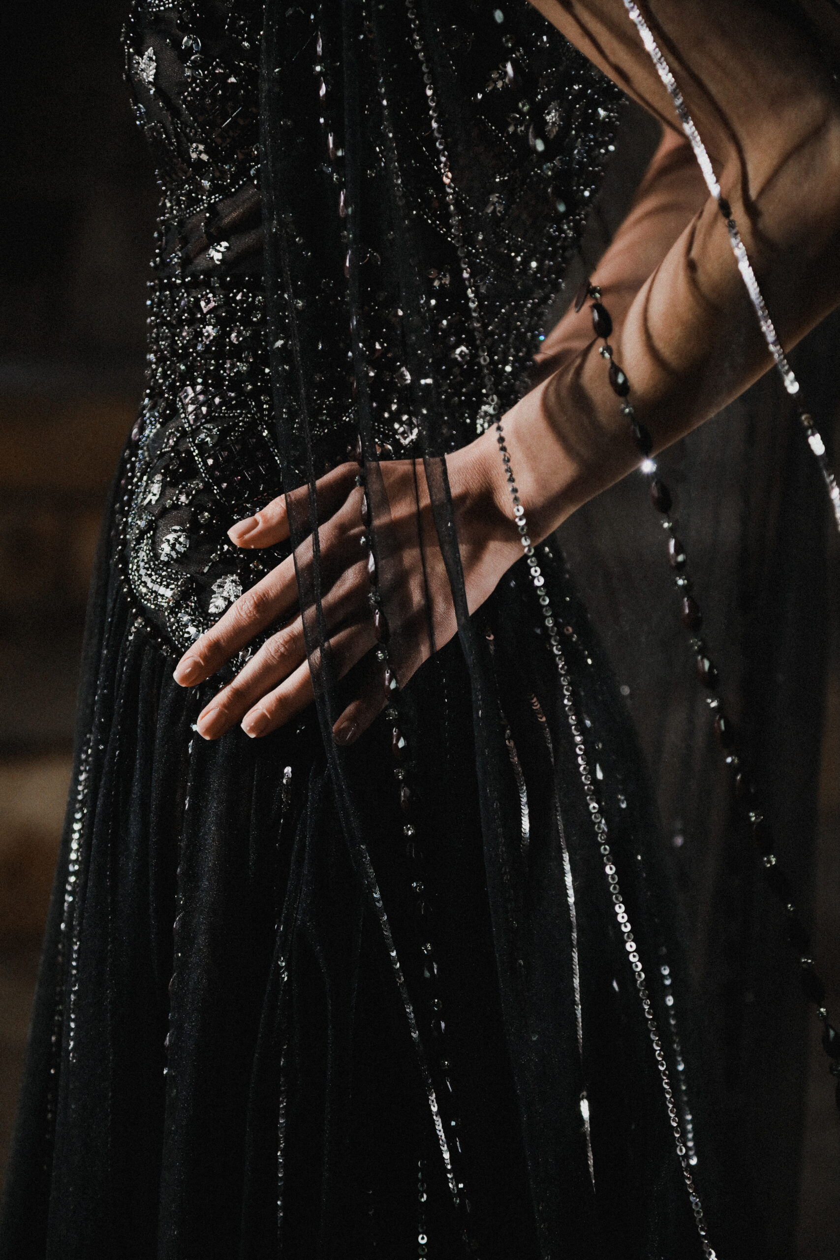 Deep velvet intertwines with sheer tulle; fitted tailoring meets soft, flowing drapes. Ethereal silks in pale hues contrasting with intense blacks and rich metallics. Sharp lines and bold tailoring blend seamlessly with delicate pleats and feminine fluidity. Strength is softened by vulnerability; love, by hate. The beautiful, the broken. All of it exists within us. The threads of our soul woven from both fragility and resilience, in the ever-evolving push and pull of being human.